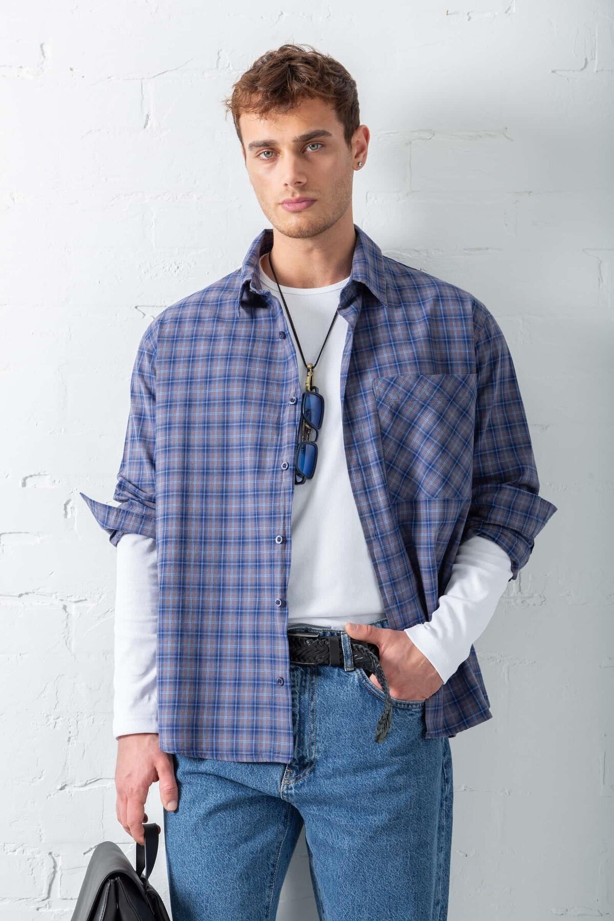 ablukaonline Erkek Oversize Ekose Baskılı Gömlek Mavi Özellikleri