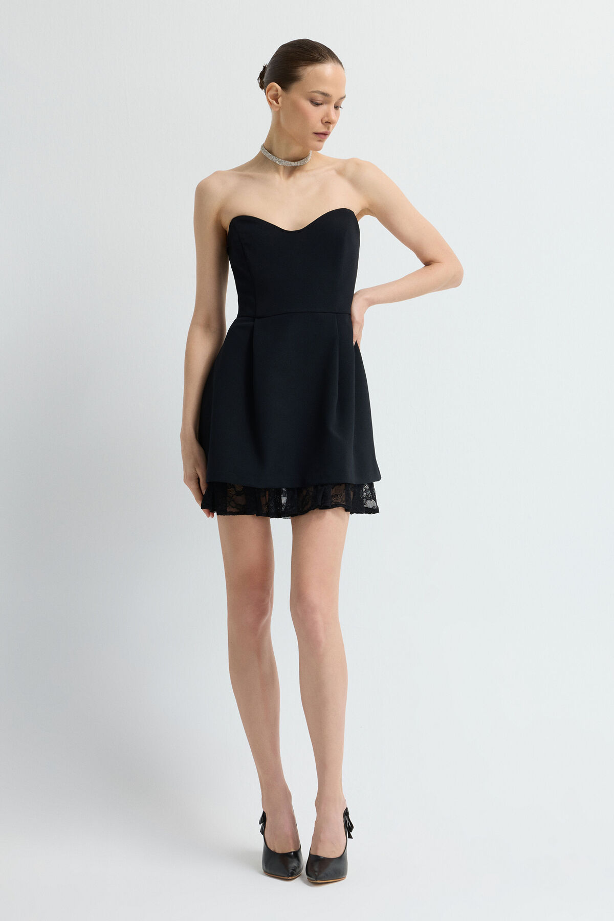 adL Etek Ucu Dantelli Mini Elbise