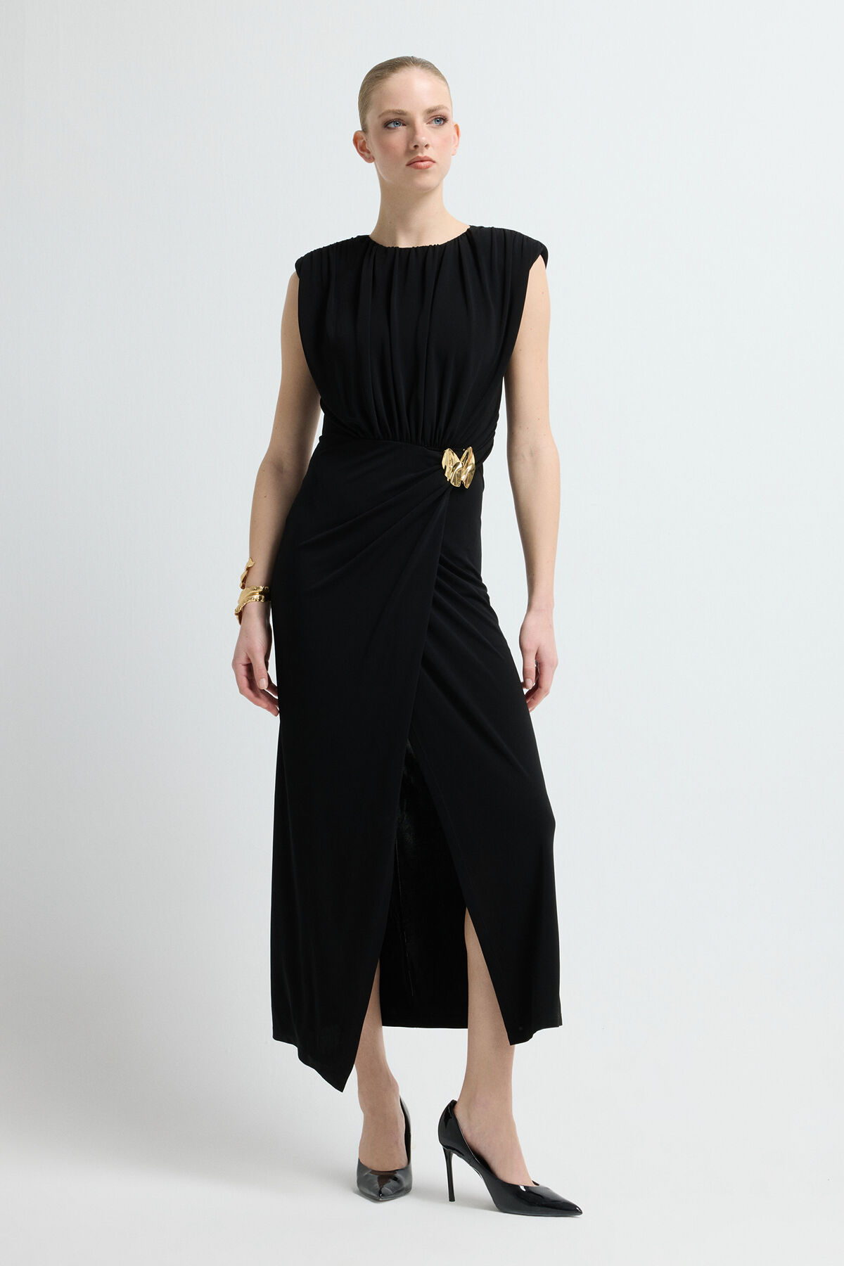 adL Kolsuz Örme Büzgülü Elbise