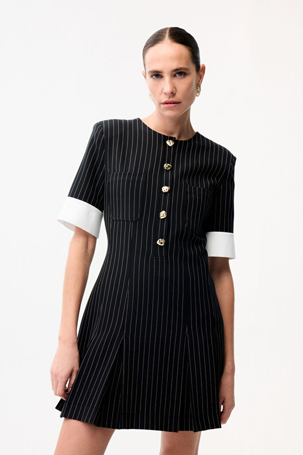 adL Önü Düğmeli Mini Elbise