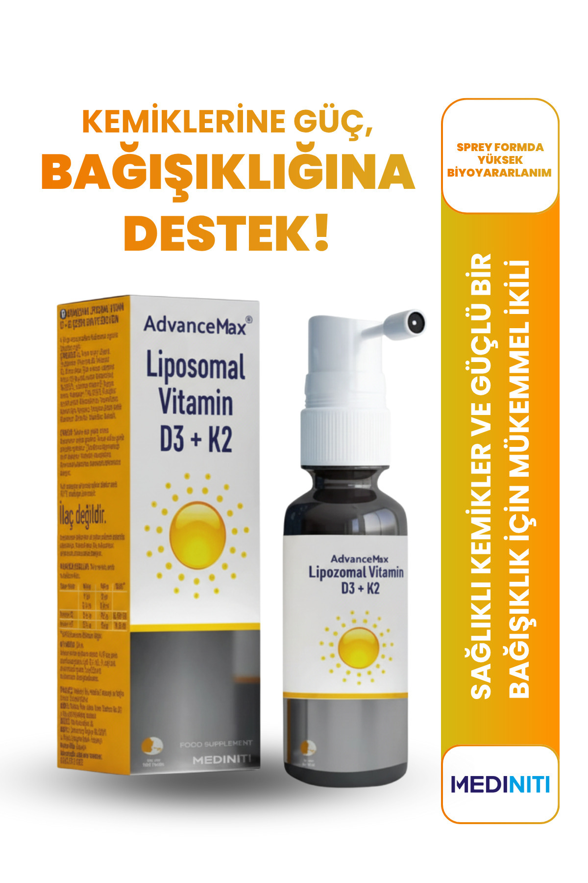 AdvanceMax Lipozomal D3K2 Sprey 30 ml Özellikleri