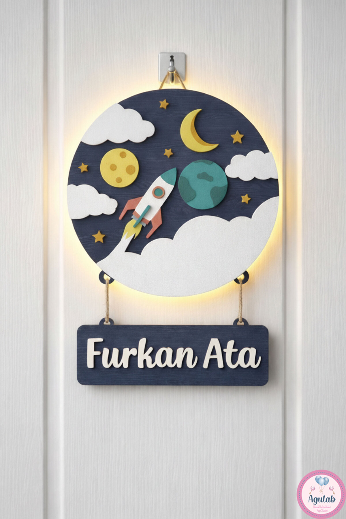 Agulab Roket Temalı Işıklı İsimli Kapı Süsü