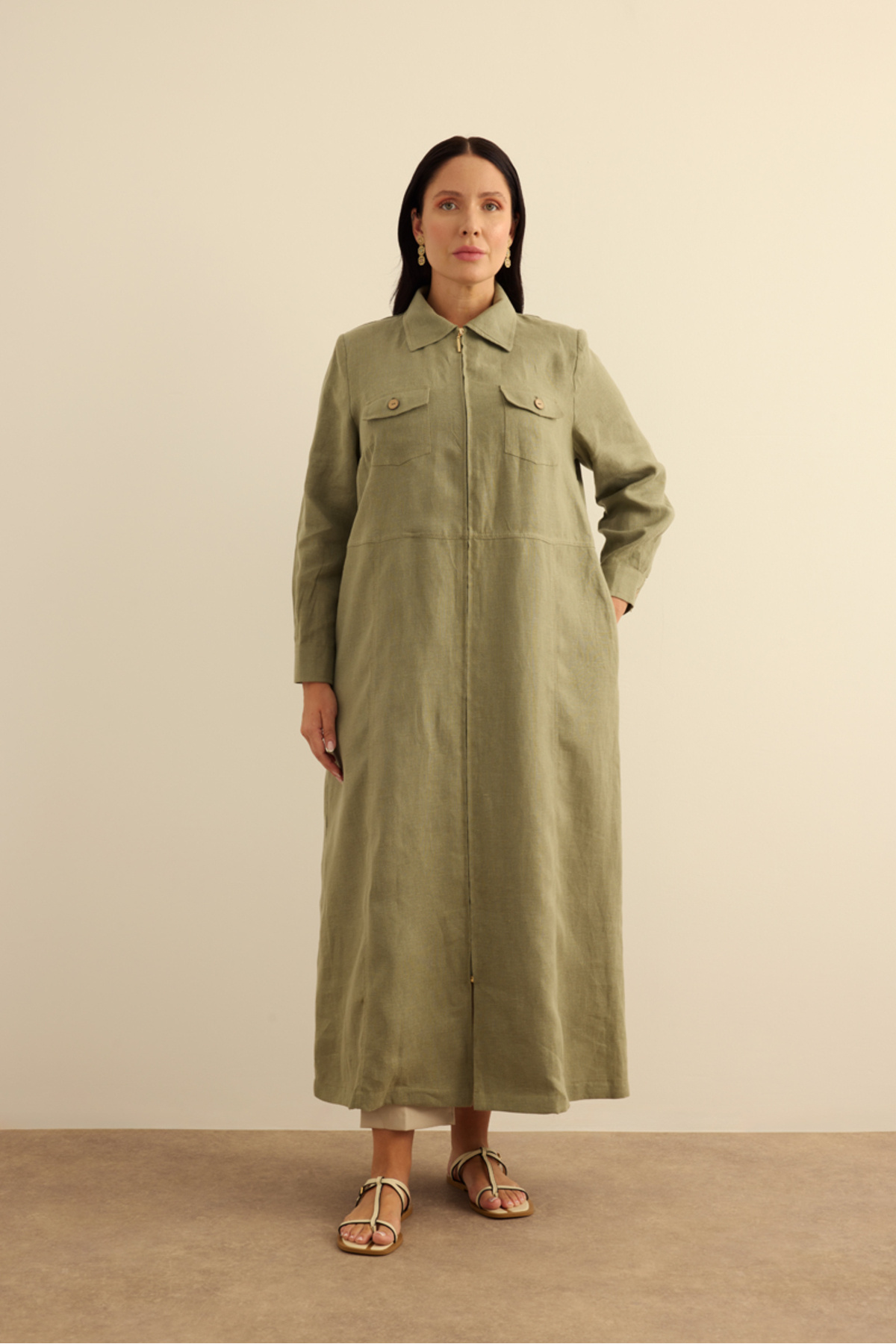 Aker Fermuarlı Keten Ferace