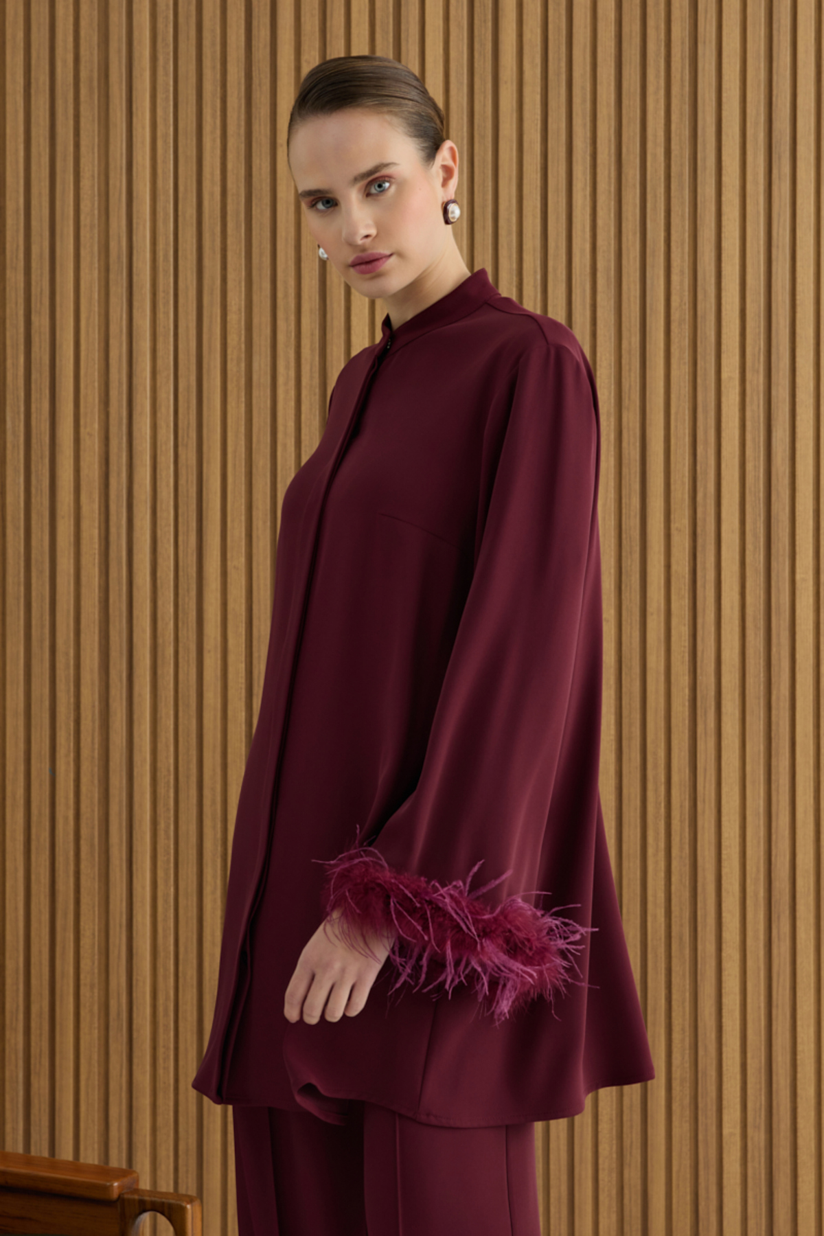Aker Vişne Şerit Tüylü Tunik Özellikleri