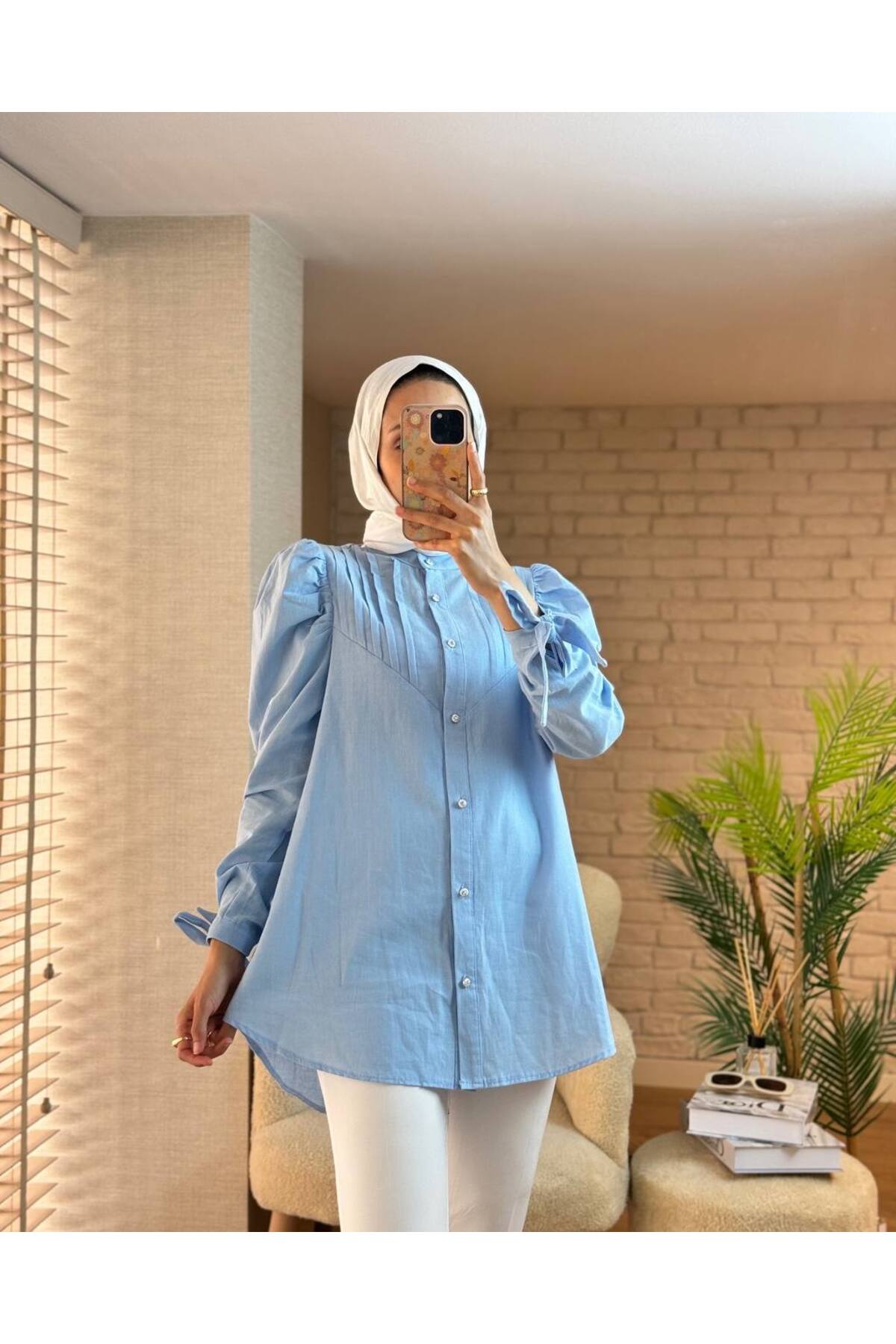 ALHADİS mavi keten gömlek