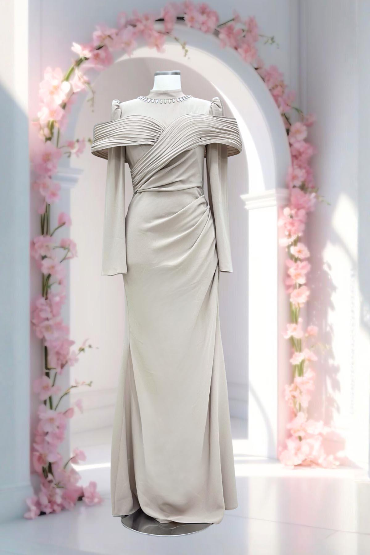 Amine Hüma Dila Abiye Elbise Bej Özellikleri