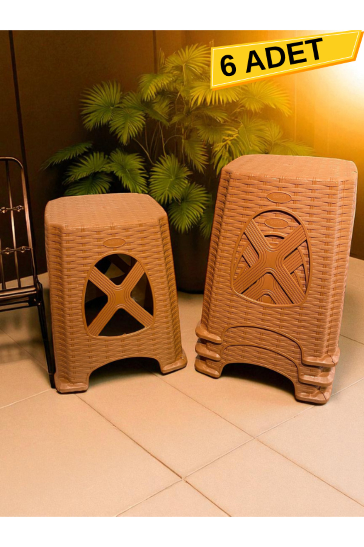 AR PLASTİK Plastik Tabure 6 Adet, 45cm Tabure, Çapraz Tabure