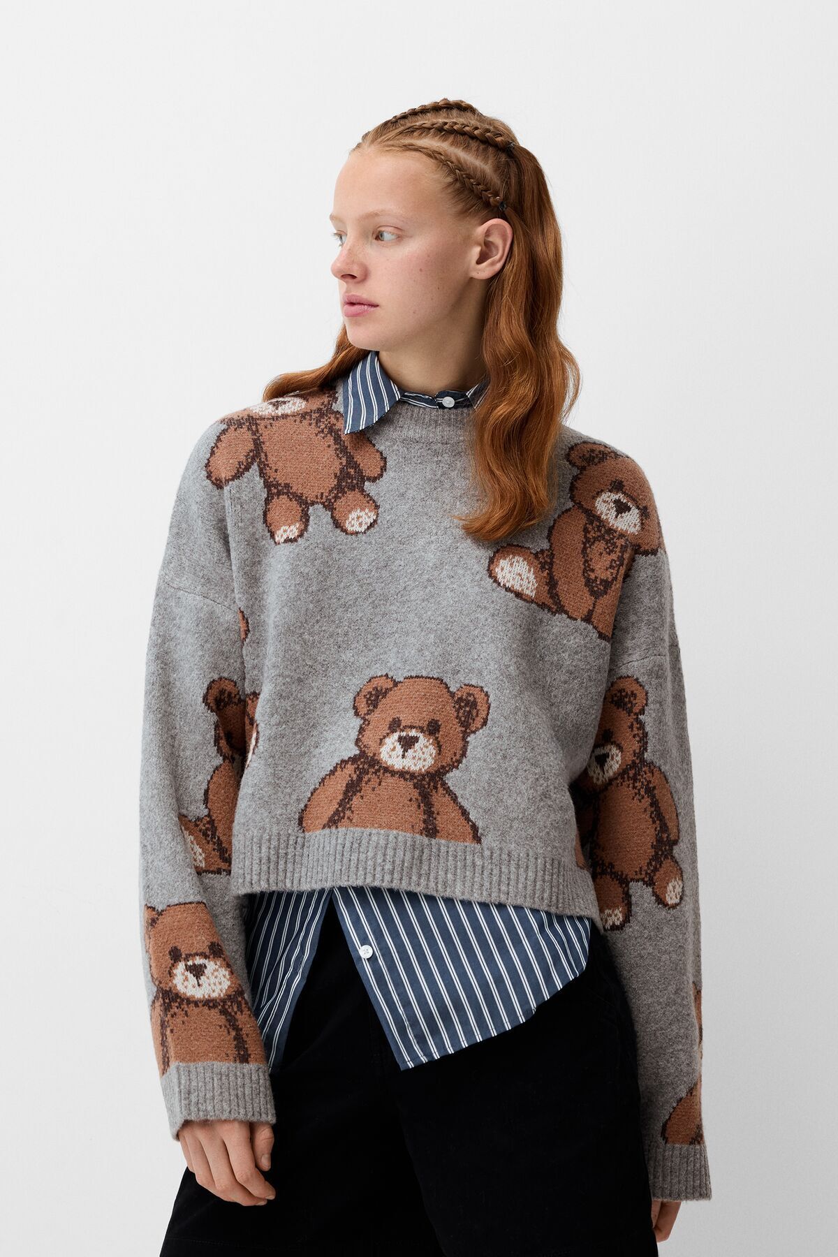 ميزات سترة منقوشة بالكامل من Bershka