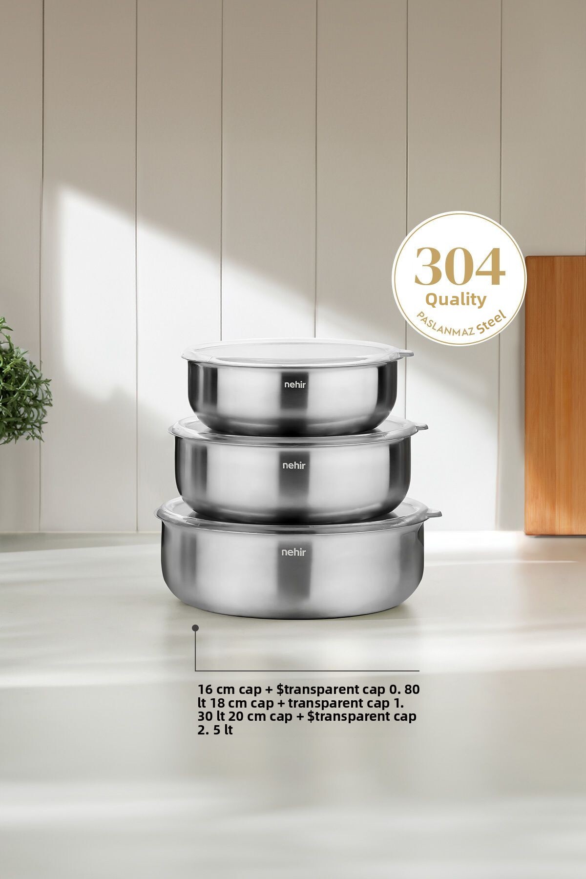 ميزات طقم تخزين فولاذي فضي مكون من 6 قطع من Nehir