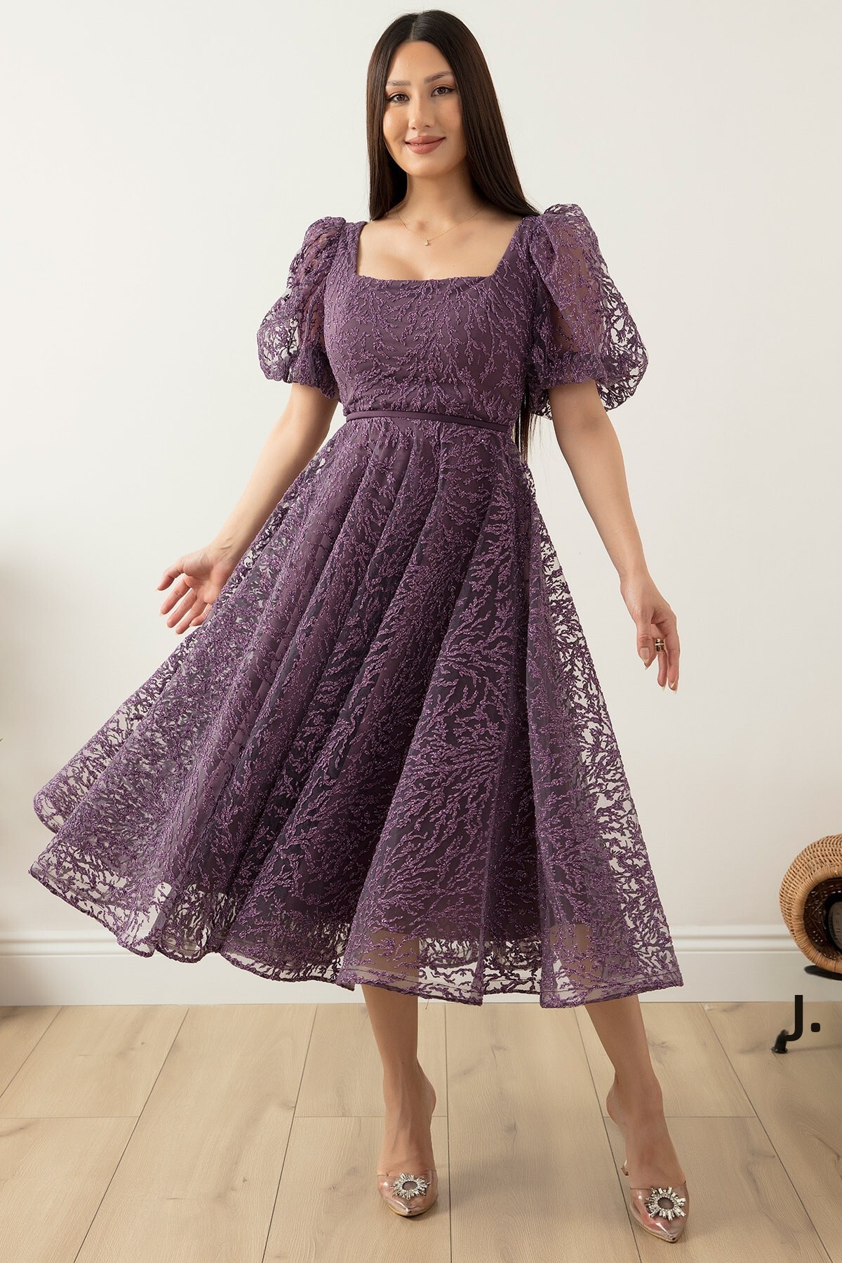 ميزات فستان من التول اللامع برقبة مربعة 1491 من PULLIMM