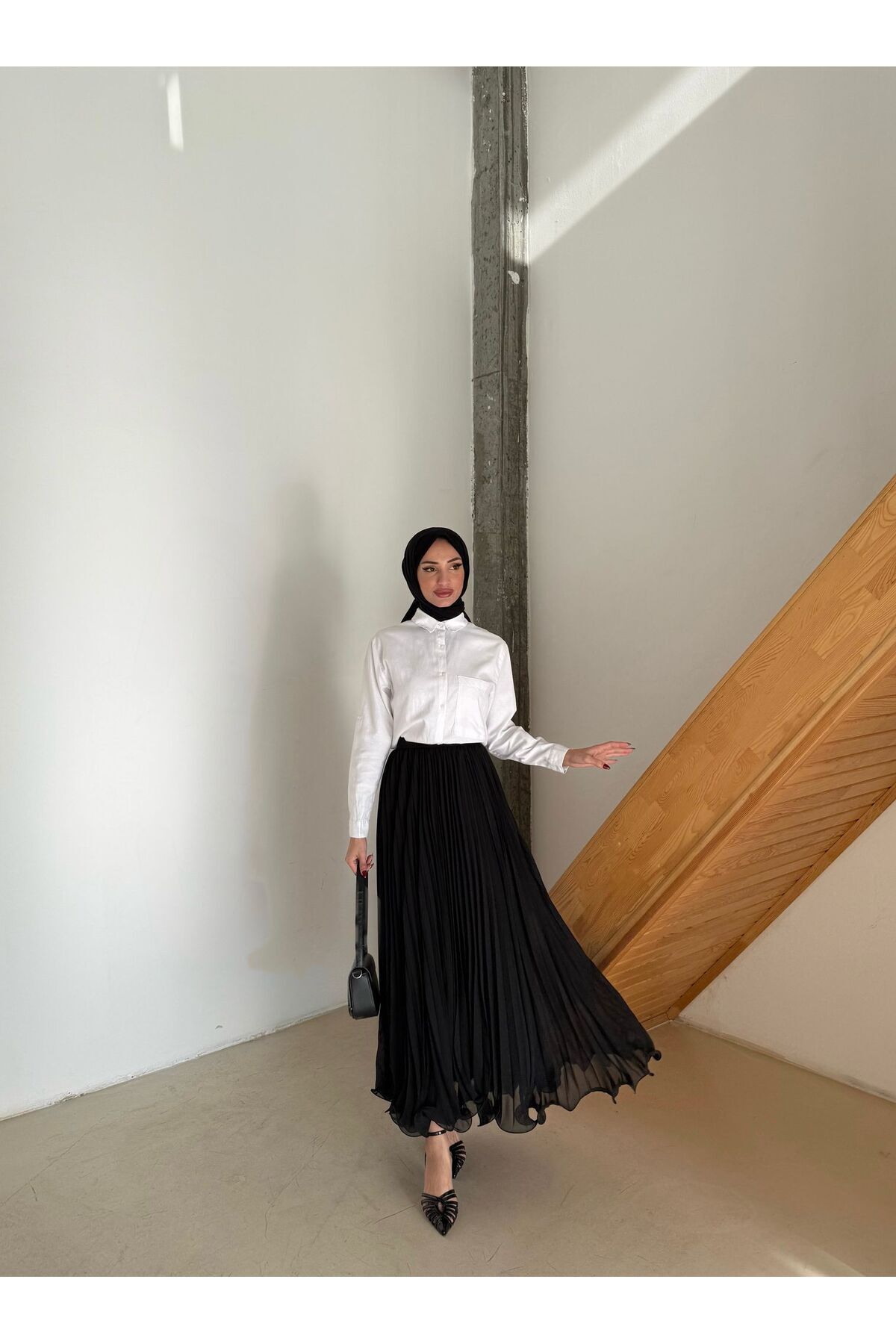Aranlı tekstil Şifon Piliseli Tesettür Etek