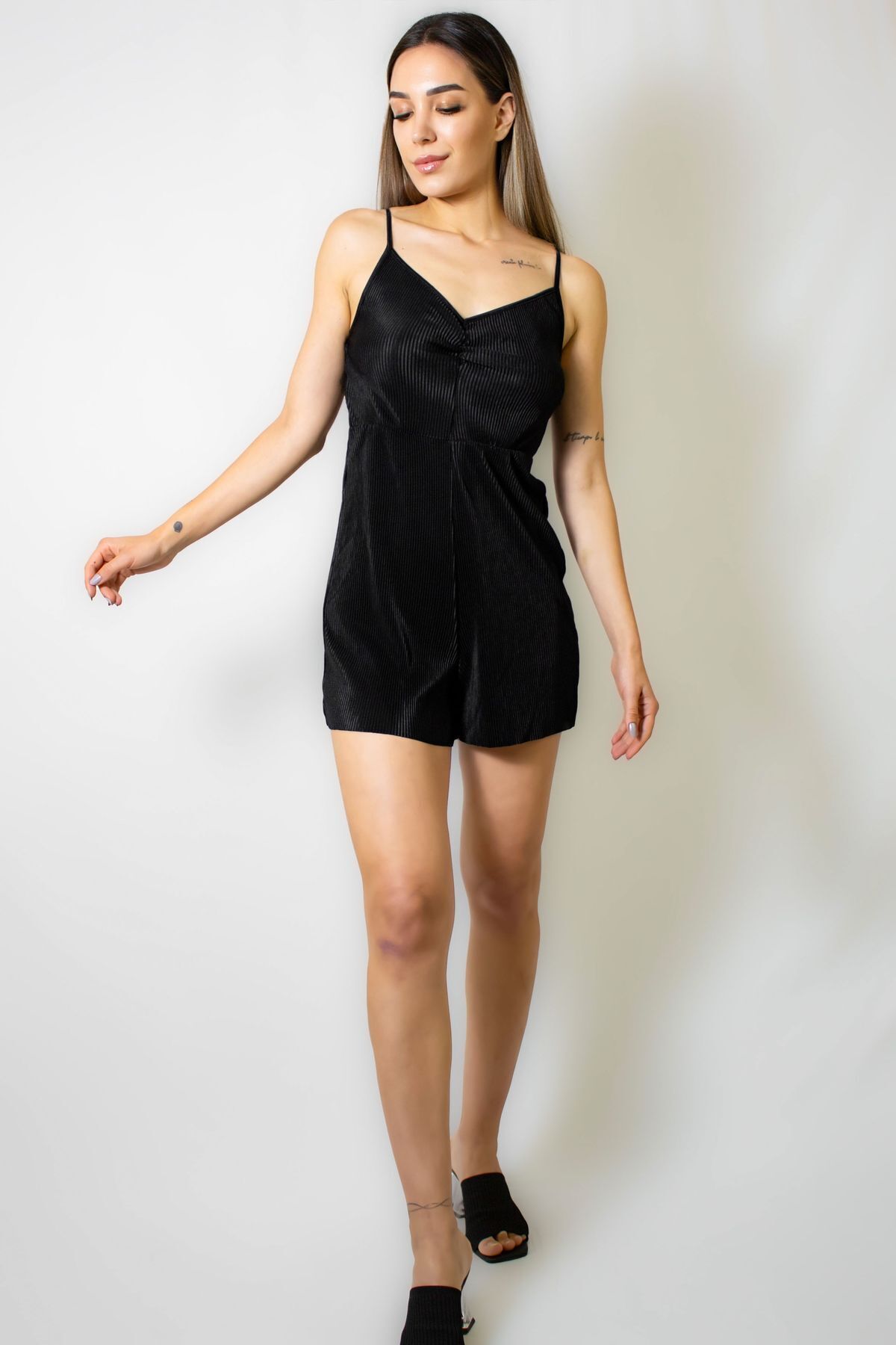 ARESMODA Kadın Siyah Fitilli Askılı Şort Tulum Özellikleri