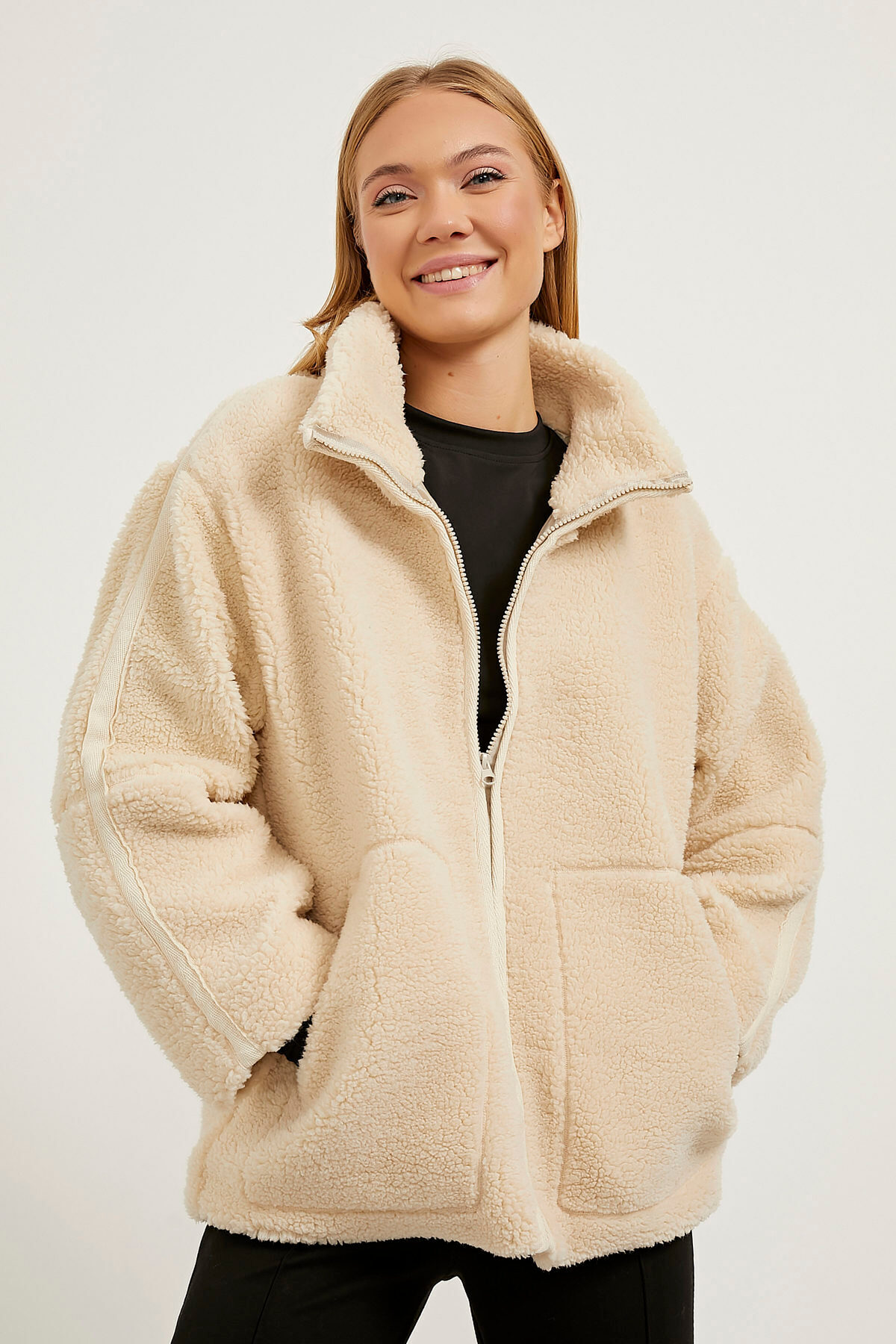 Arma Life Kadın Kışlık Oversize Kalın Basic Krem Peluş Mont Özellikleri