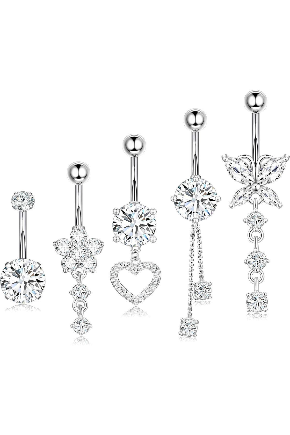 AyçaSilver 5'li set çelik göbek piercingi Özellikleri