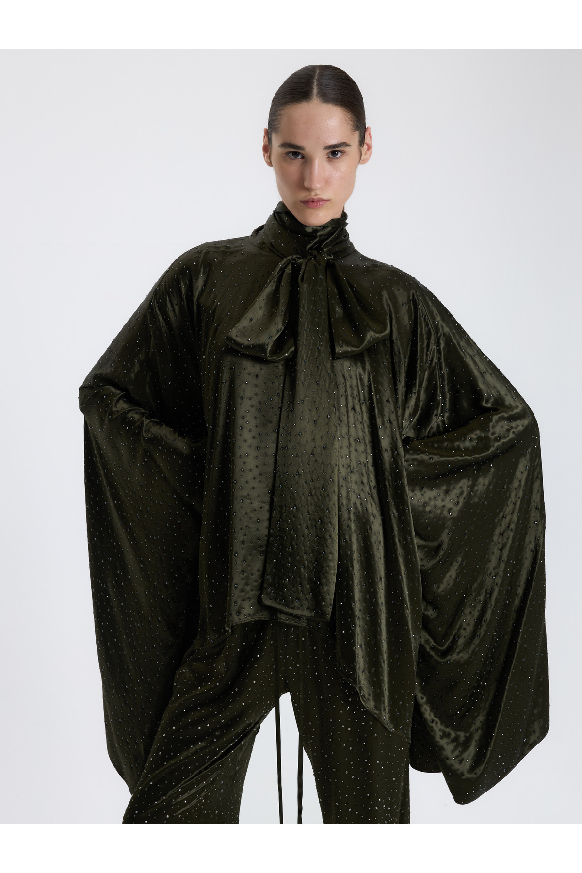 BAQA Haki Taş İşlemeli Drapeli Bluz Özellikleri
