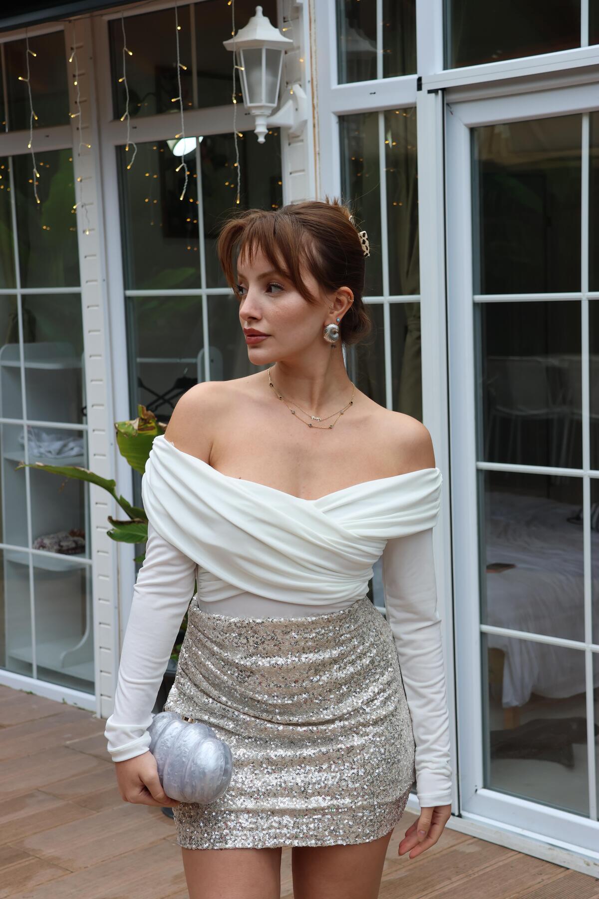 BAŞARAN BEYAZ DRAPELİ KAYIK YAKA BLUZ Özellikleri