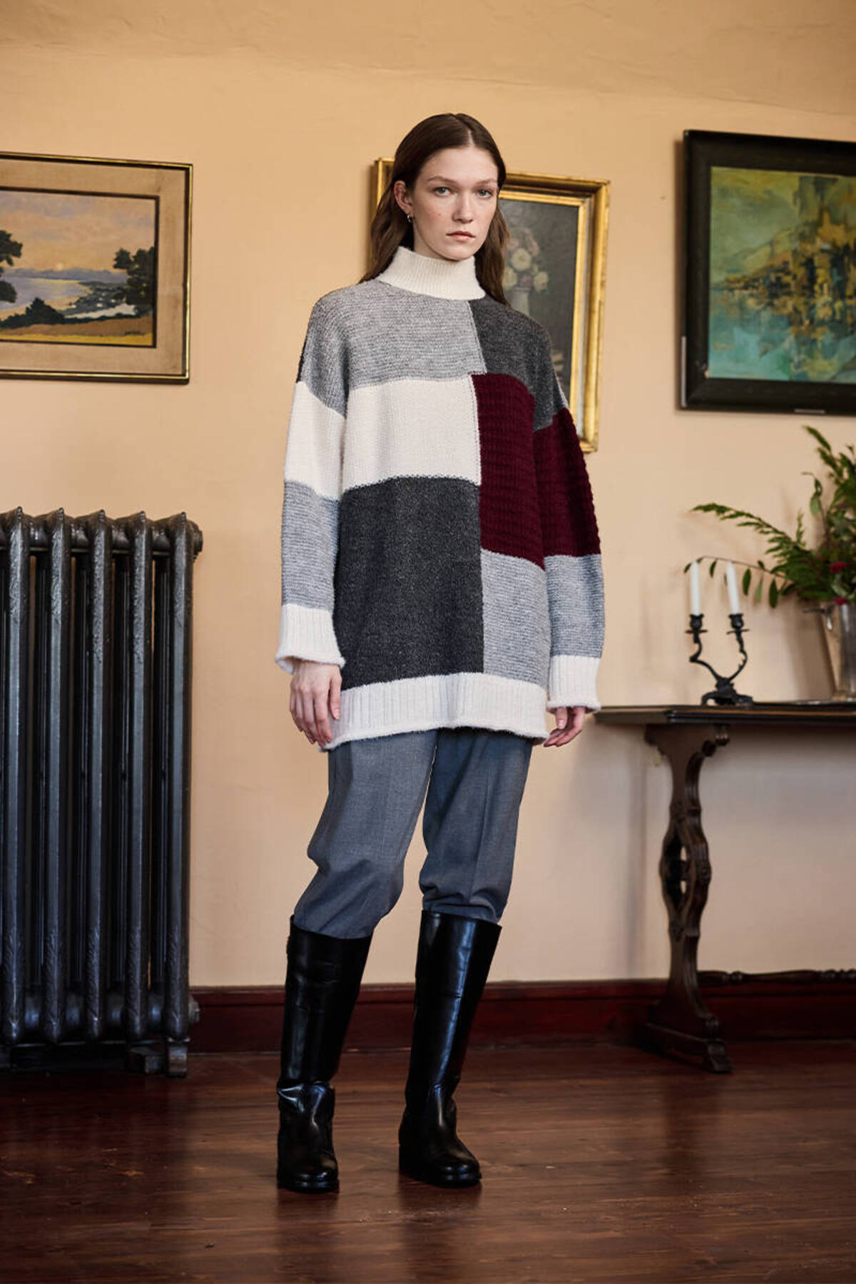 BE BLUE BORDO GRİ PATCHWORK KAZAK Özellikleri
