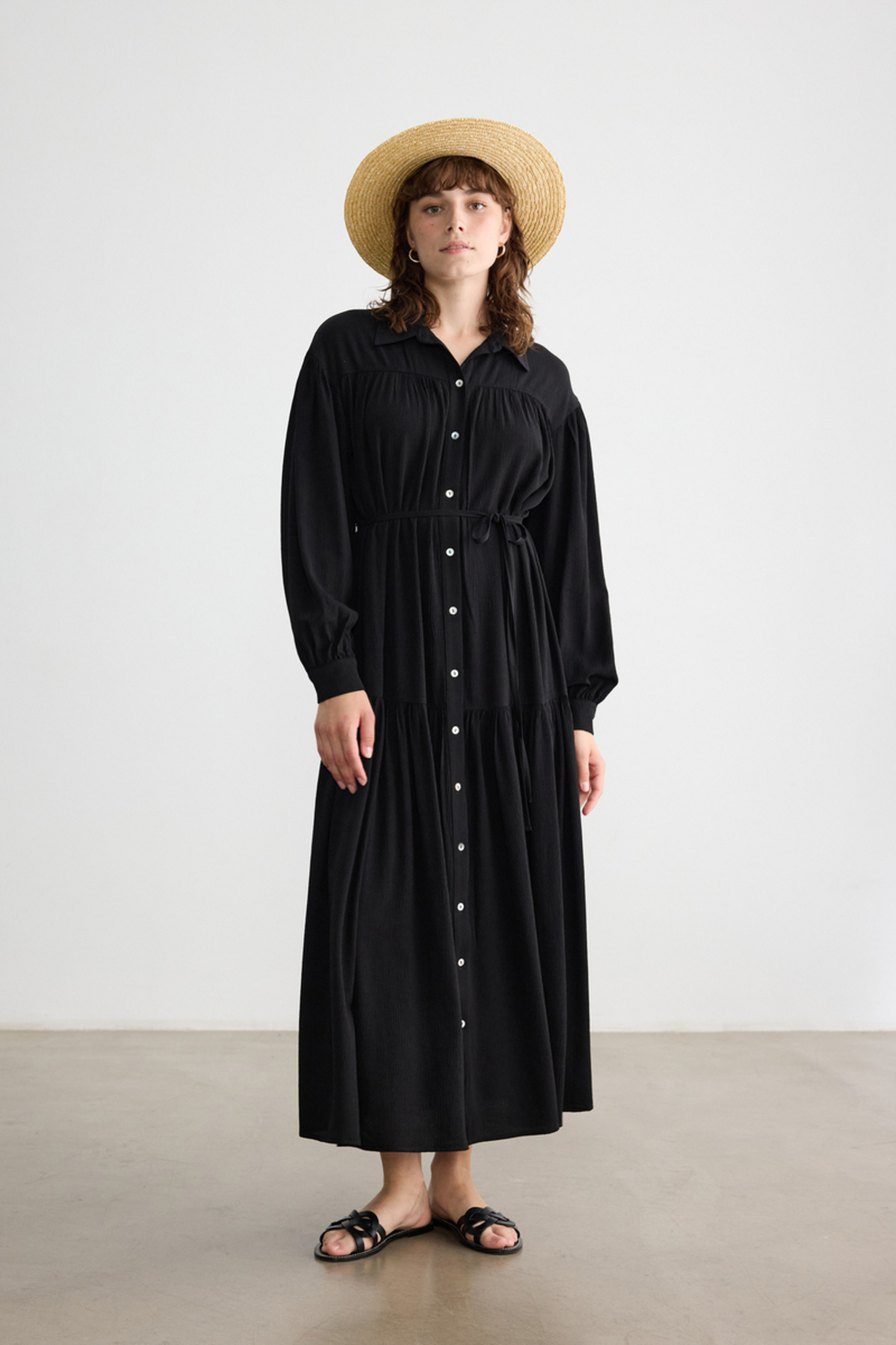 BE BLUE SİYAH DÜĞMELİ KRİNKIL ELBİSE Özellikleri