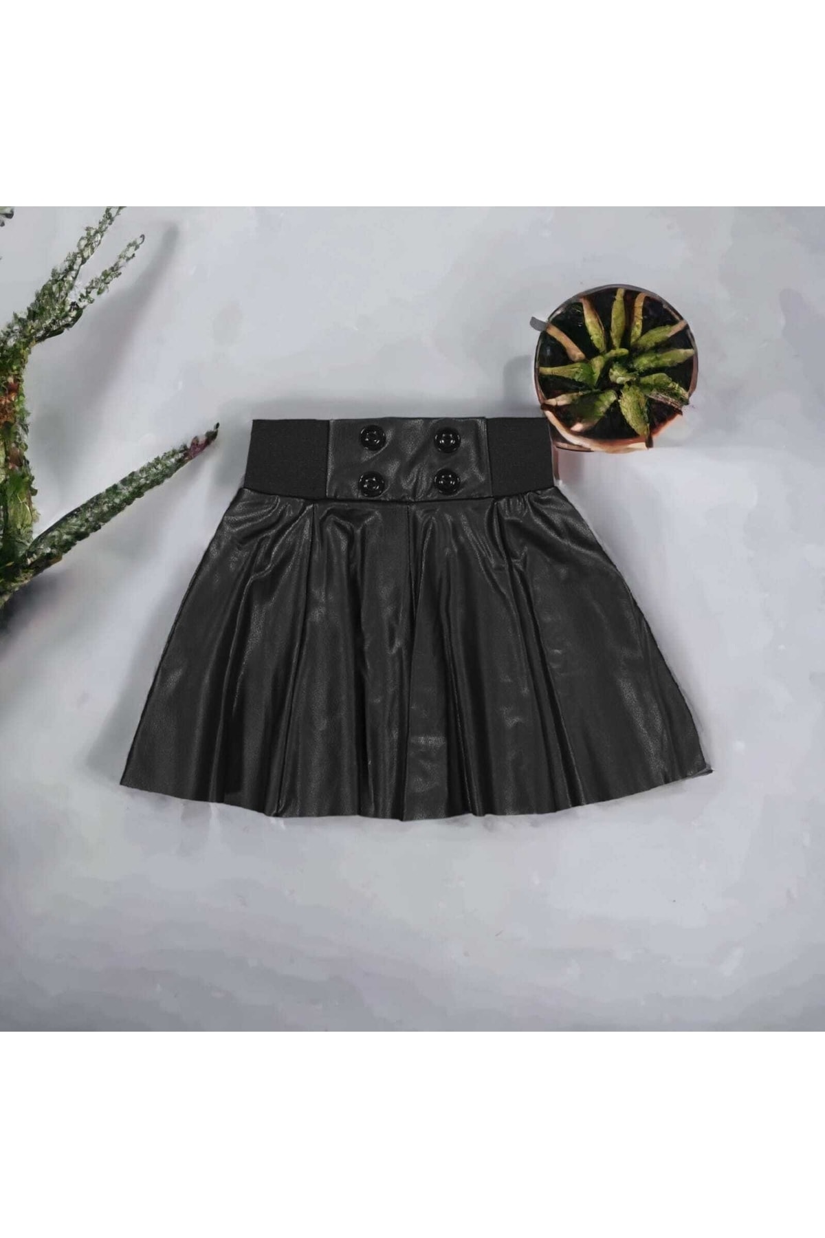 Bebemod Düğmeli Deri Etek