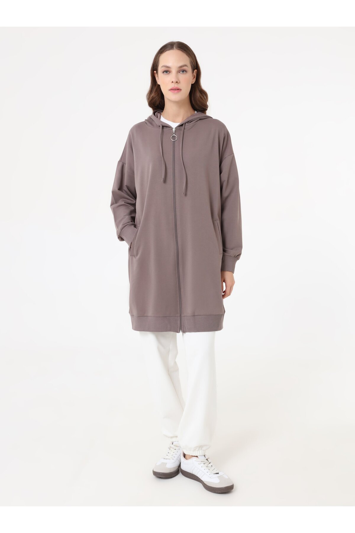 Benin Basic Fermuarlı Kapüşonlu Sweatshirt - Vizon Kahve - Özellikleri