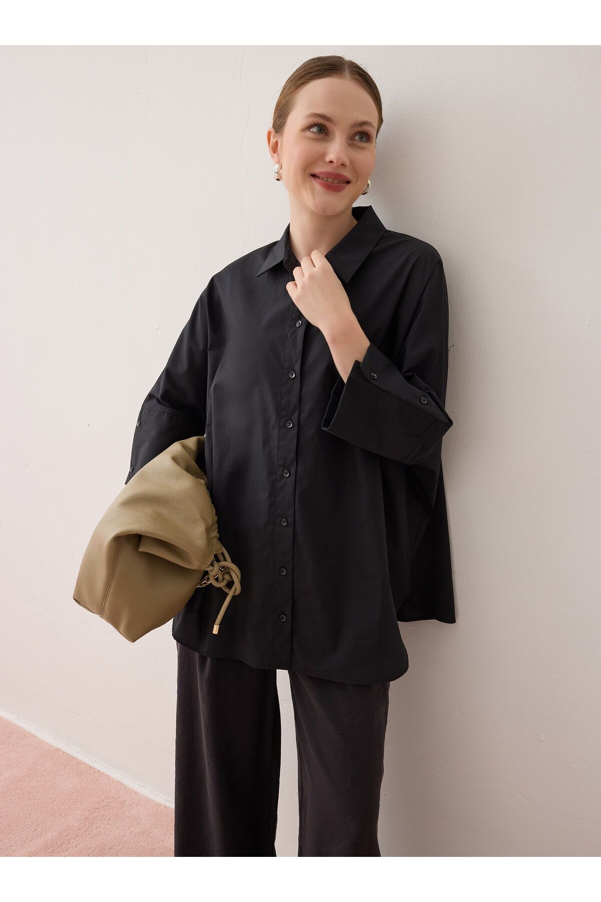Benin Oversize Düğmeli Gömlek - Siyah - Özellikleri