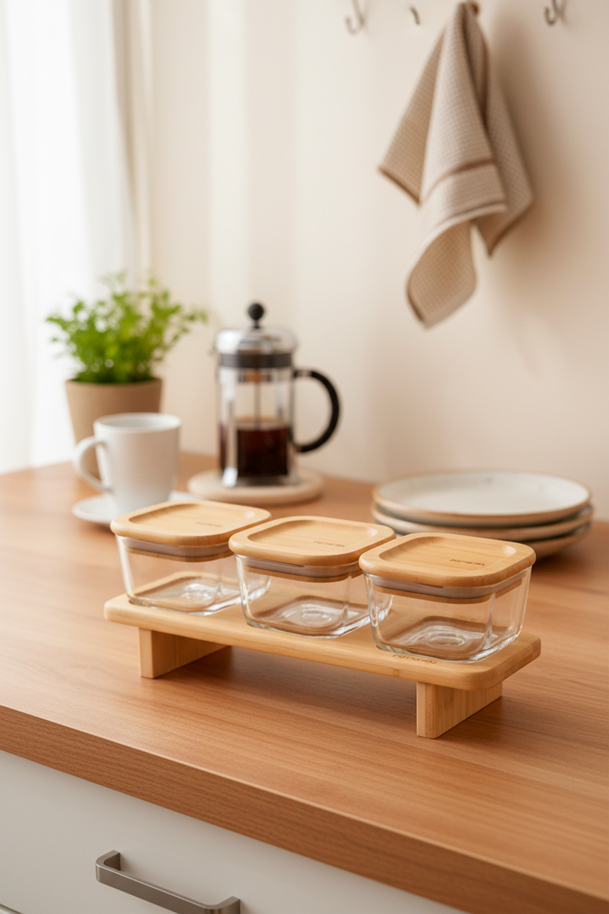Bernardo Lunaya 3'lü Bambu Standlı Kahvaltılık Orta