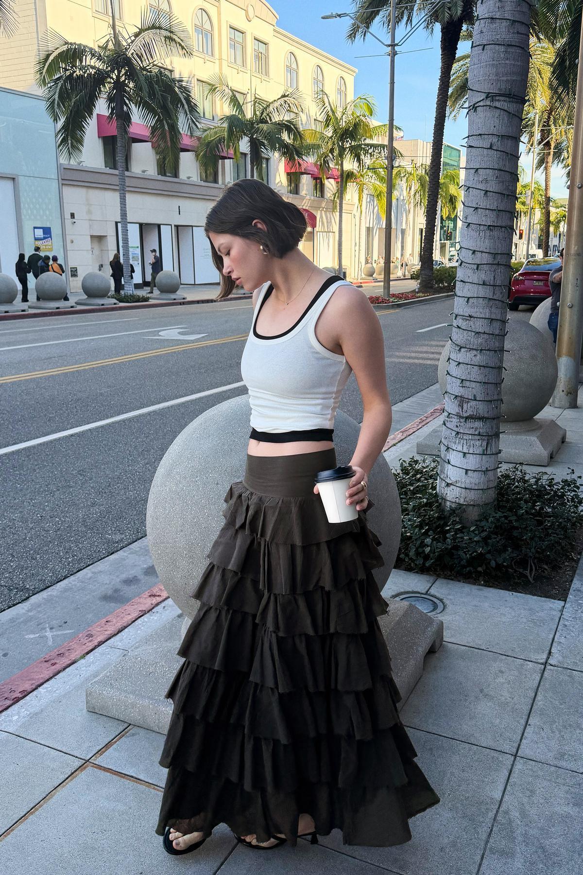 Bershka Fırfırlı rustik midi etek