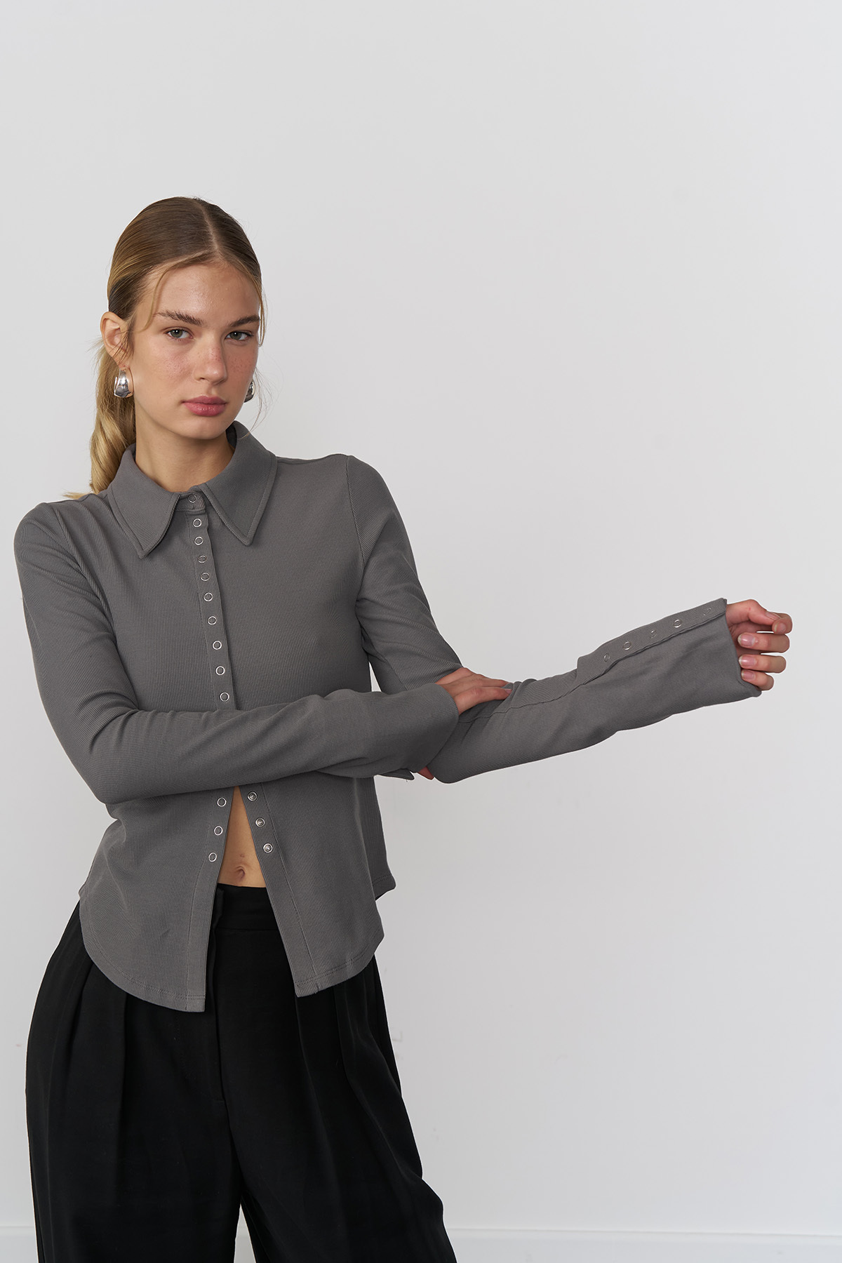 Beyyoglu Çıt Çıt Detaylı Örme Gömlek