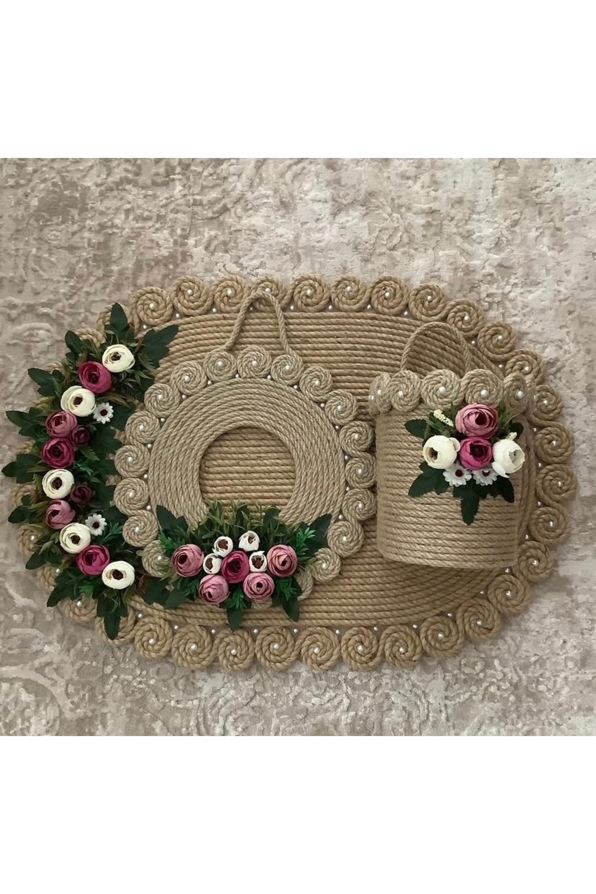 Beyzade Hasır Paspas Kapı Süsü Posta Kutusu Takımı