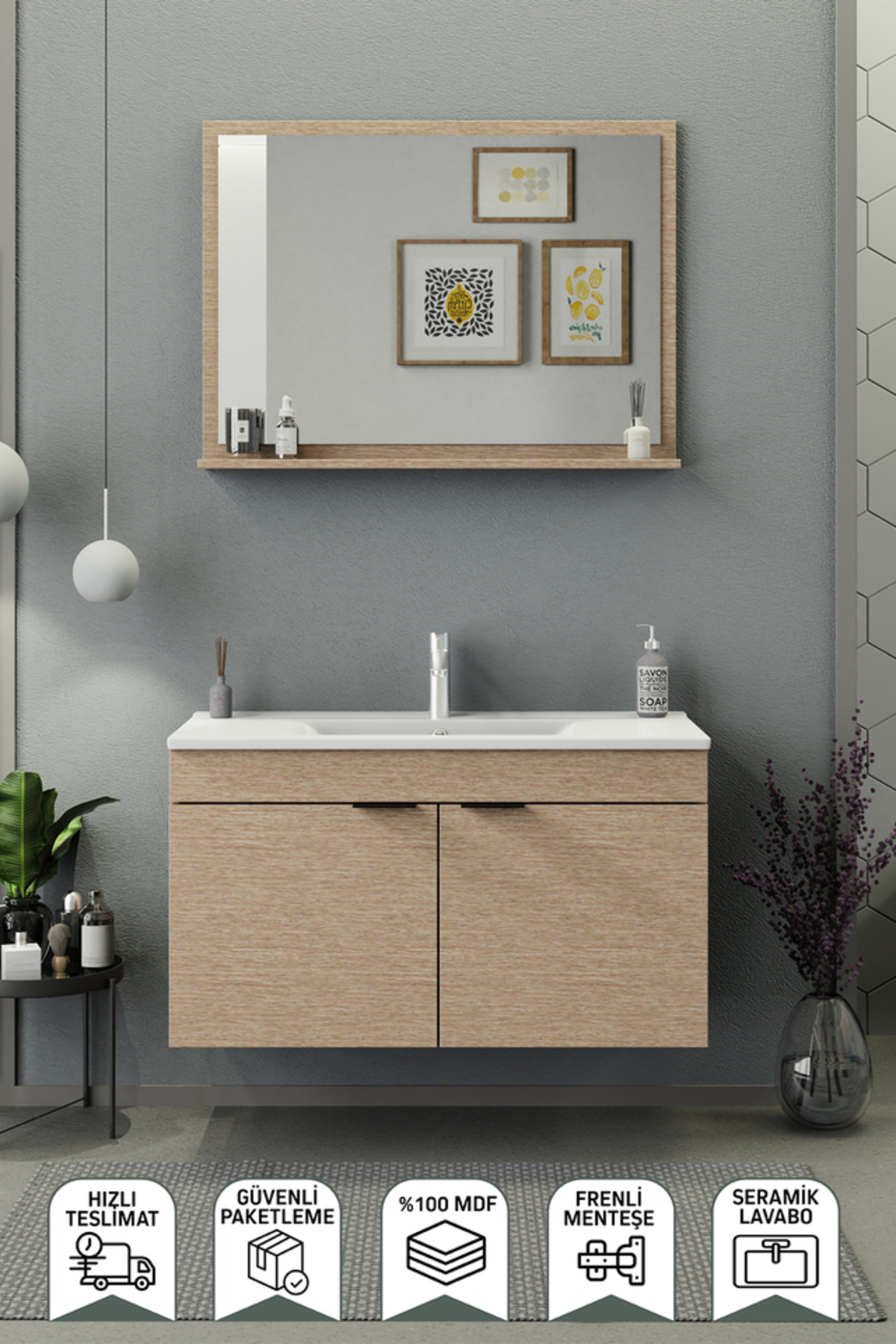 BIANI Fix Arya 100 cm Banyo Dolabı Renk Aybe Bej Özellikleri