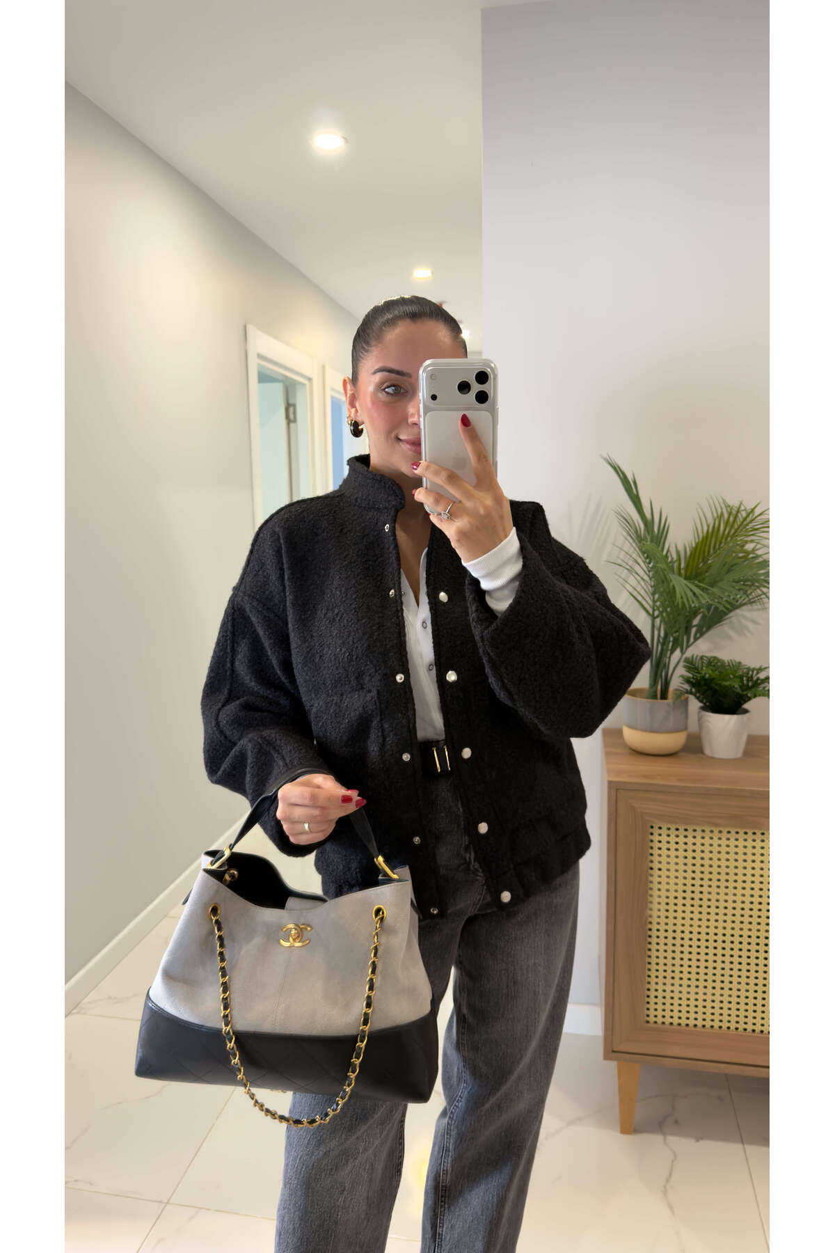 BİRCANÇİL Leyora Siyah Düğmeli Kaşe Ceket