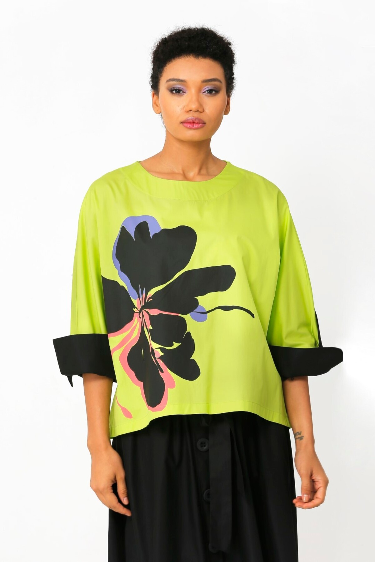 BİZE Baskılı Bluz - Limon Yeşili Özellikleri
