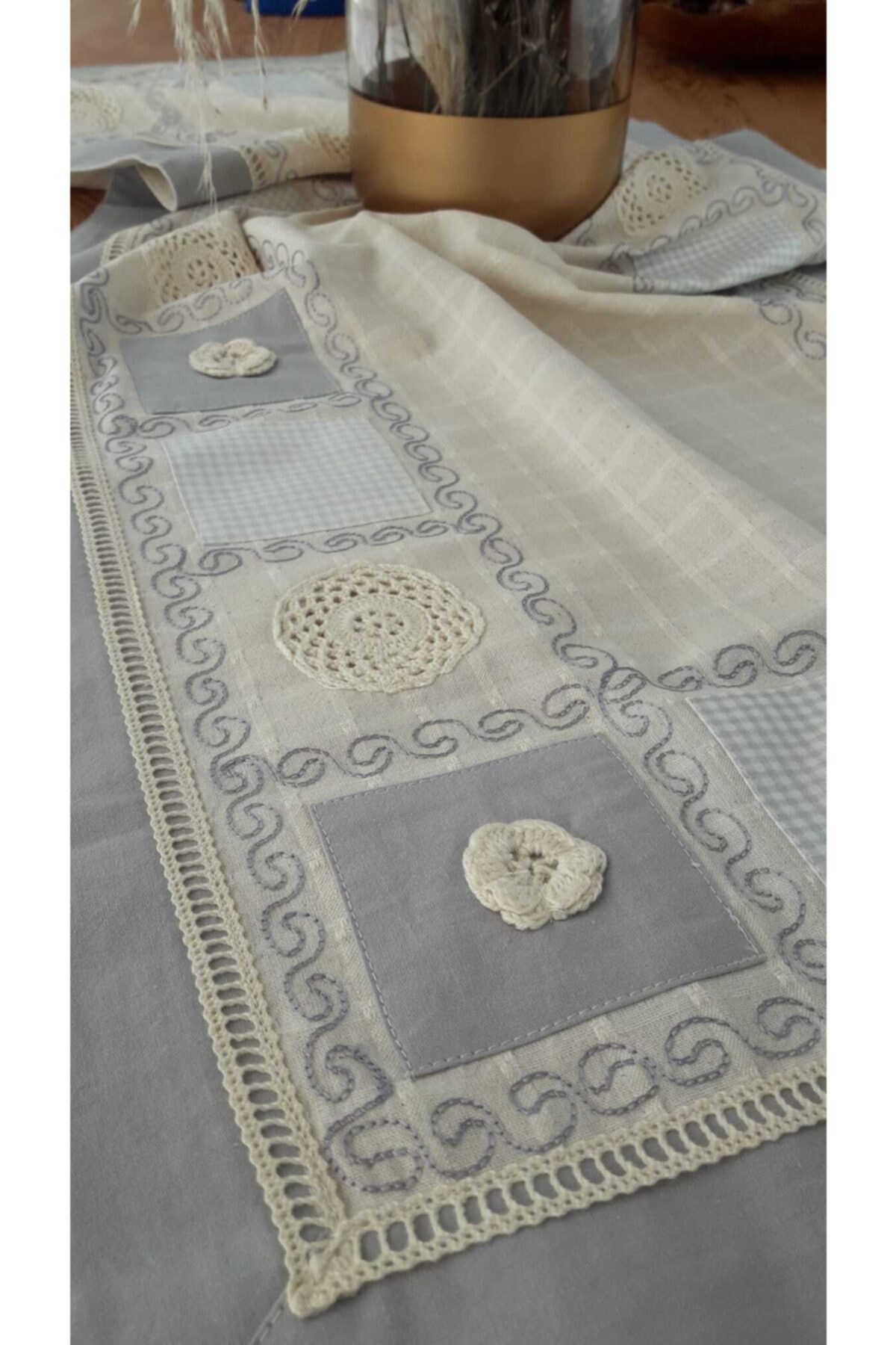 Bohemian Mavi El Işi Patchwork Dantelli Naturel Runner Özellikleri