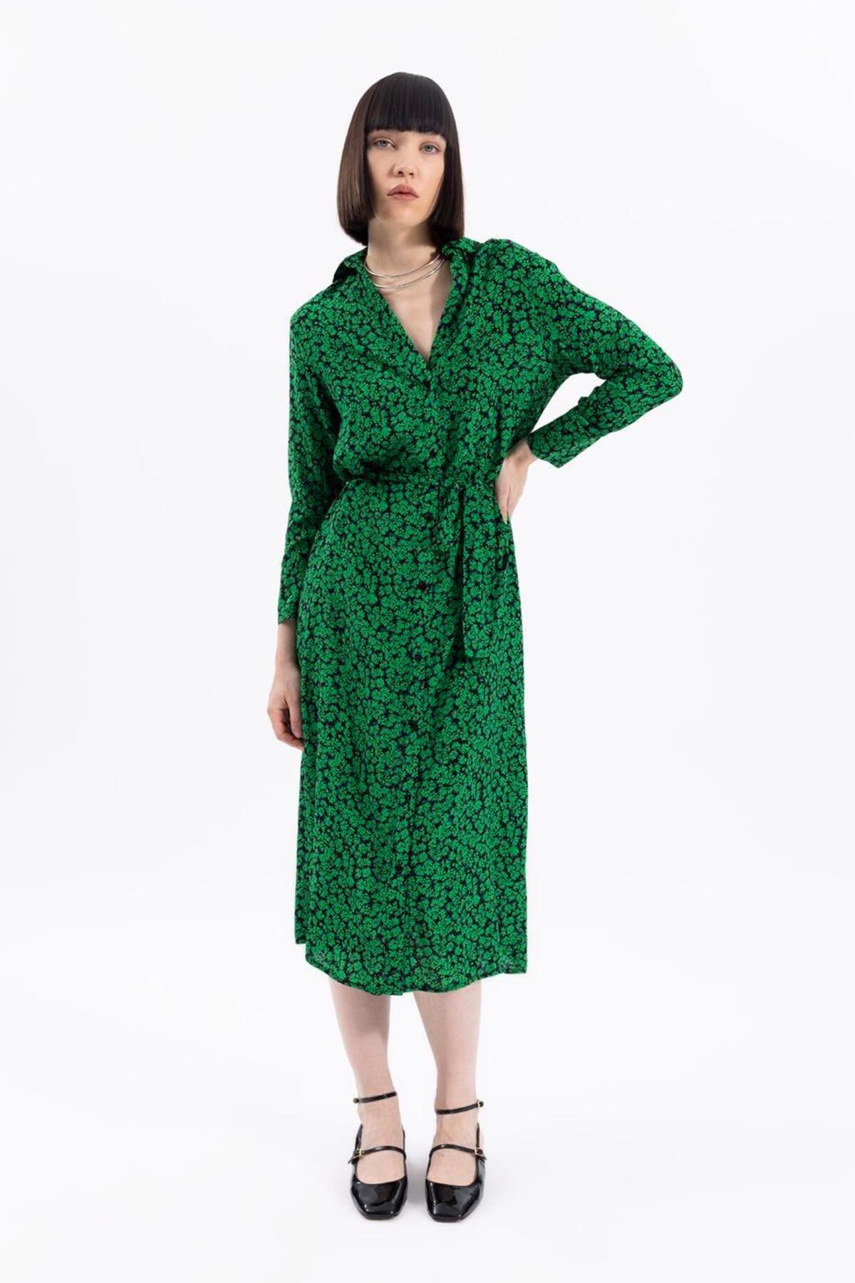 BSL Midi Boy Gömlek Elbise