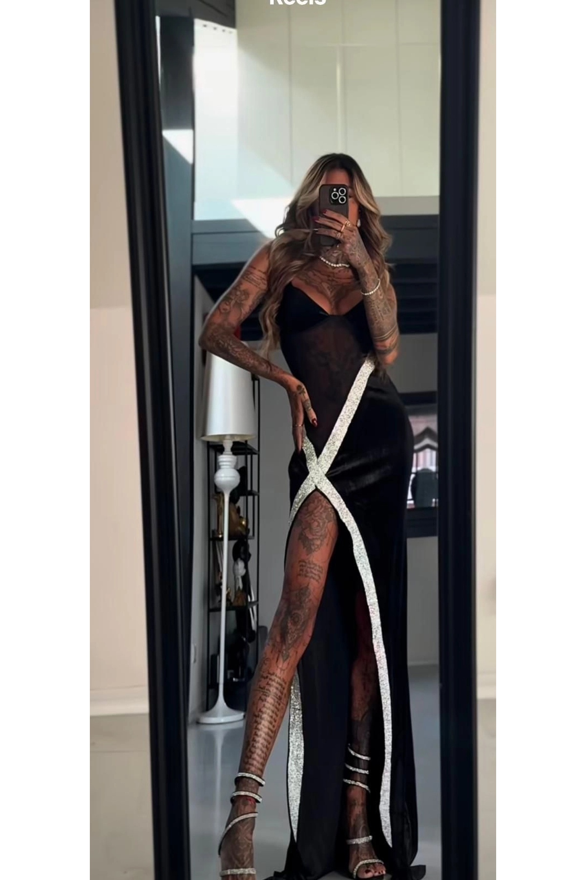 Buklemoda Dalgıç Kumaş Silikon Taşlı Tüllü Elbise