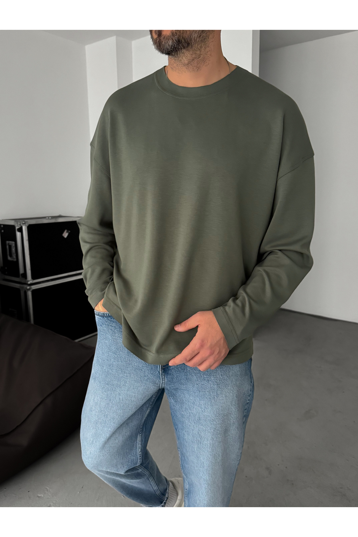BYBASICMAN Haki Modal Kumaş Likralı Oversize Sweatshirt By