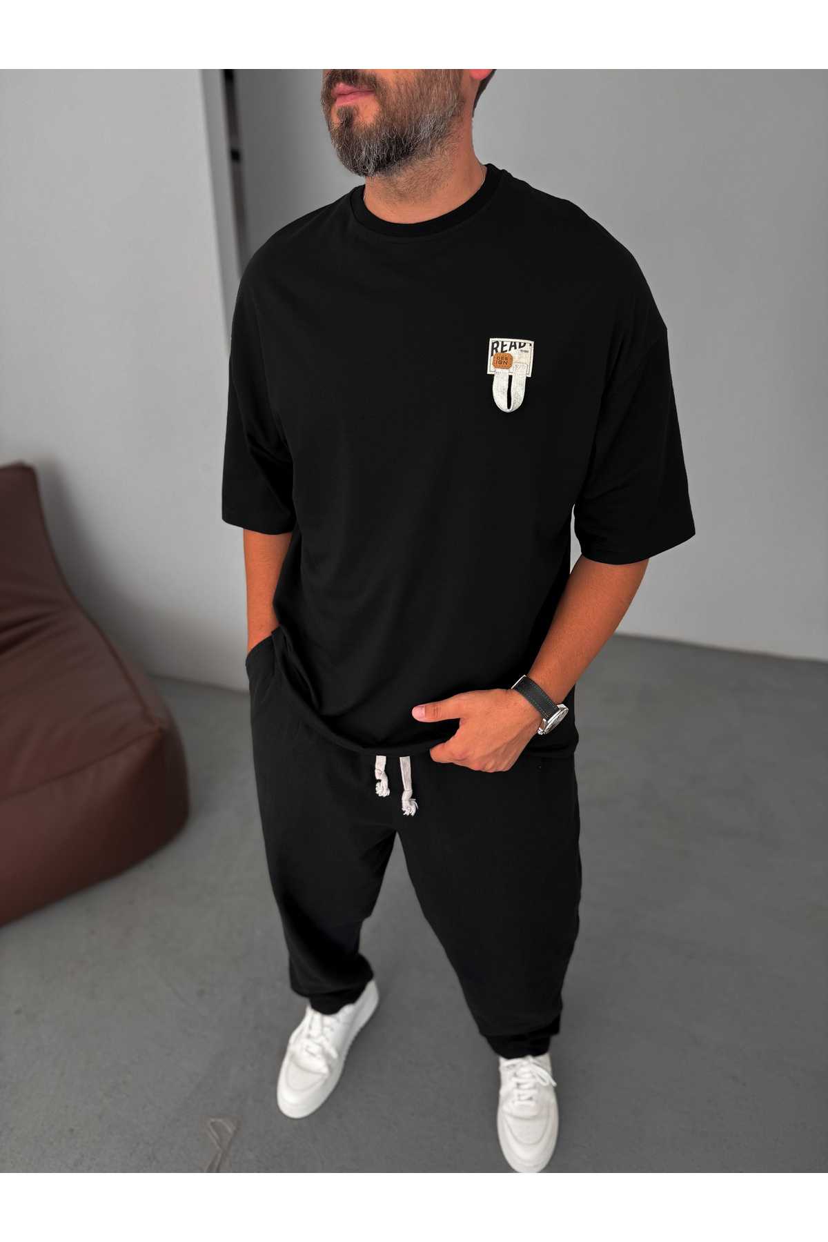 BYBASICMAN Siyah Ready İpli Patchli Oversize T-Shirt BY-084 Özellikleri