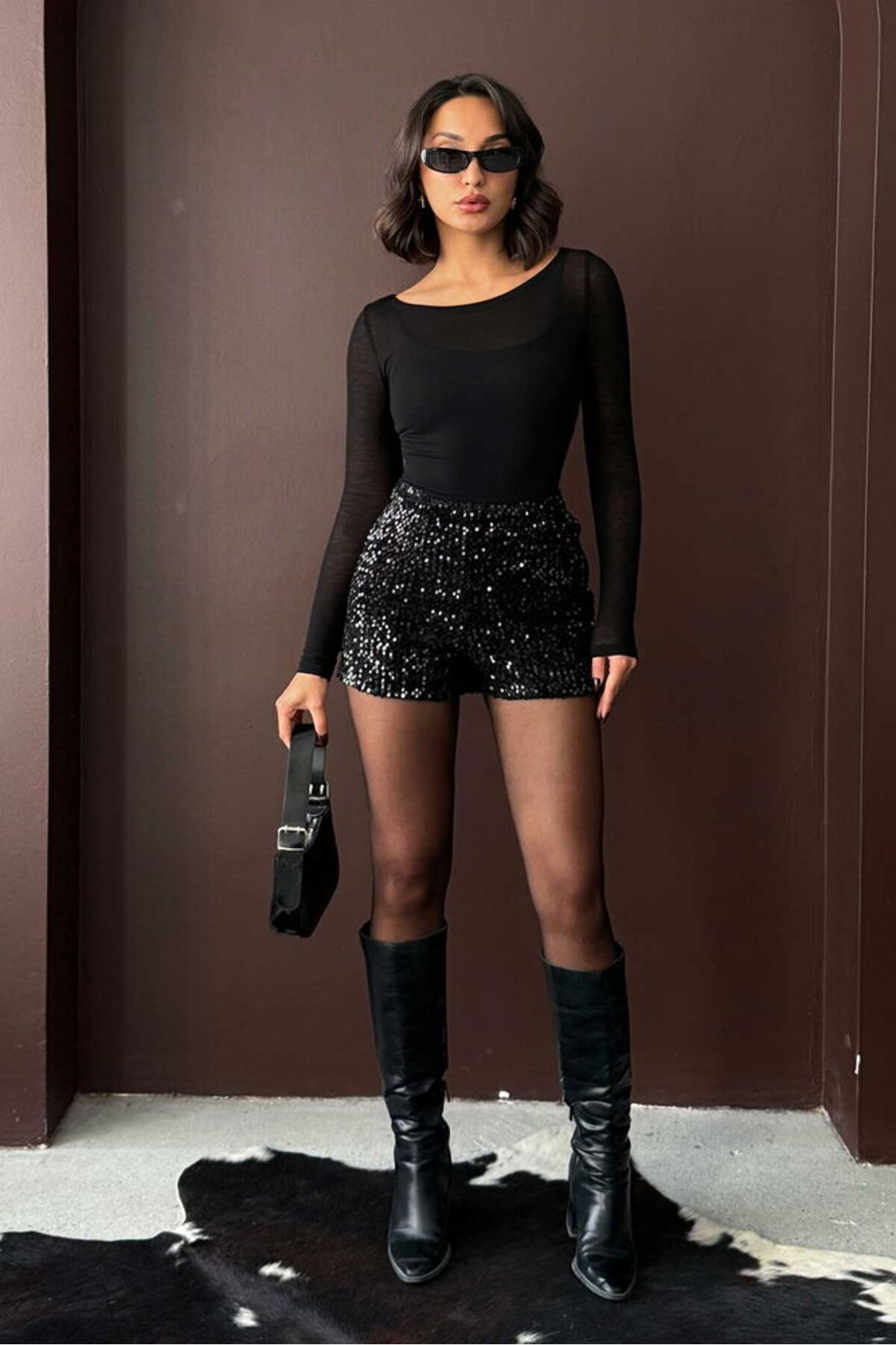Caddebostan Moda Siyah Pullu Kadife Şort Modern Premium Luxury Trend Tasarım Şort