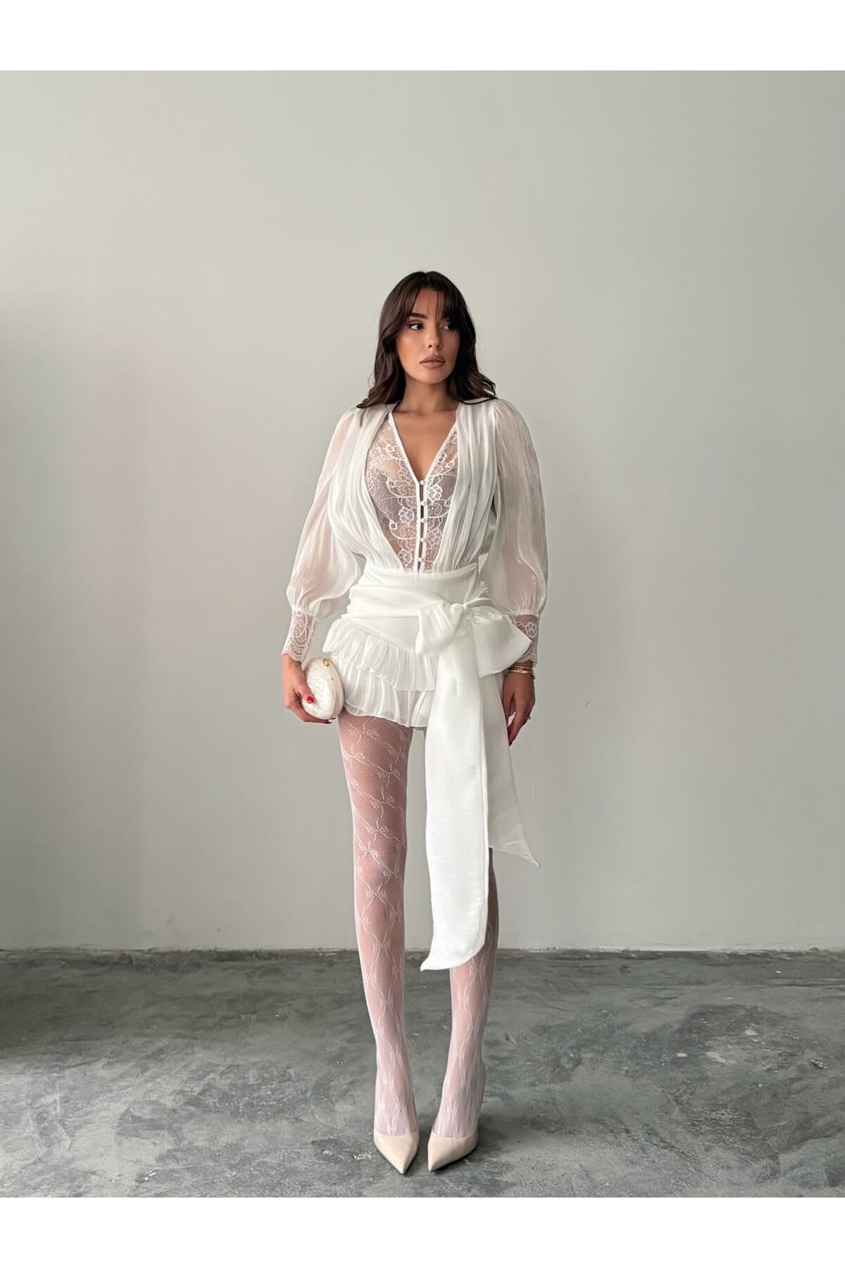 cemo Dantel İşlemeli Volanlı Şifon Mini Elbise Özellikleri