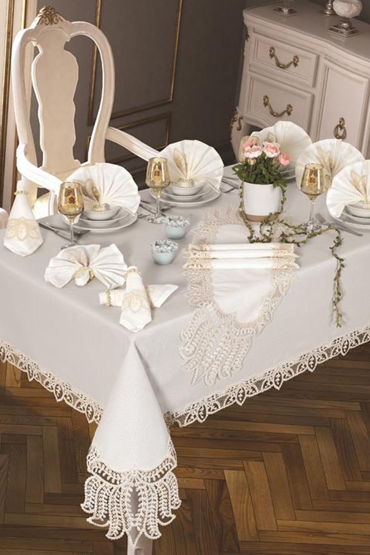 Çeyiz Diyarı Grape Masa Örtüsü 26 Parça Krem Özellikleri