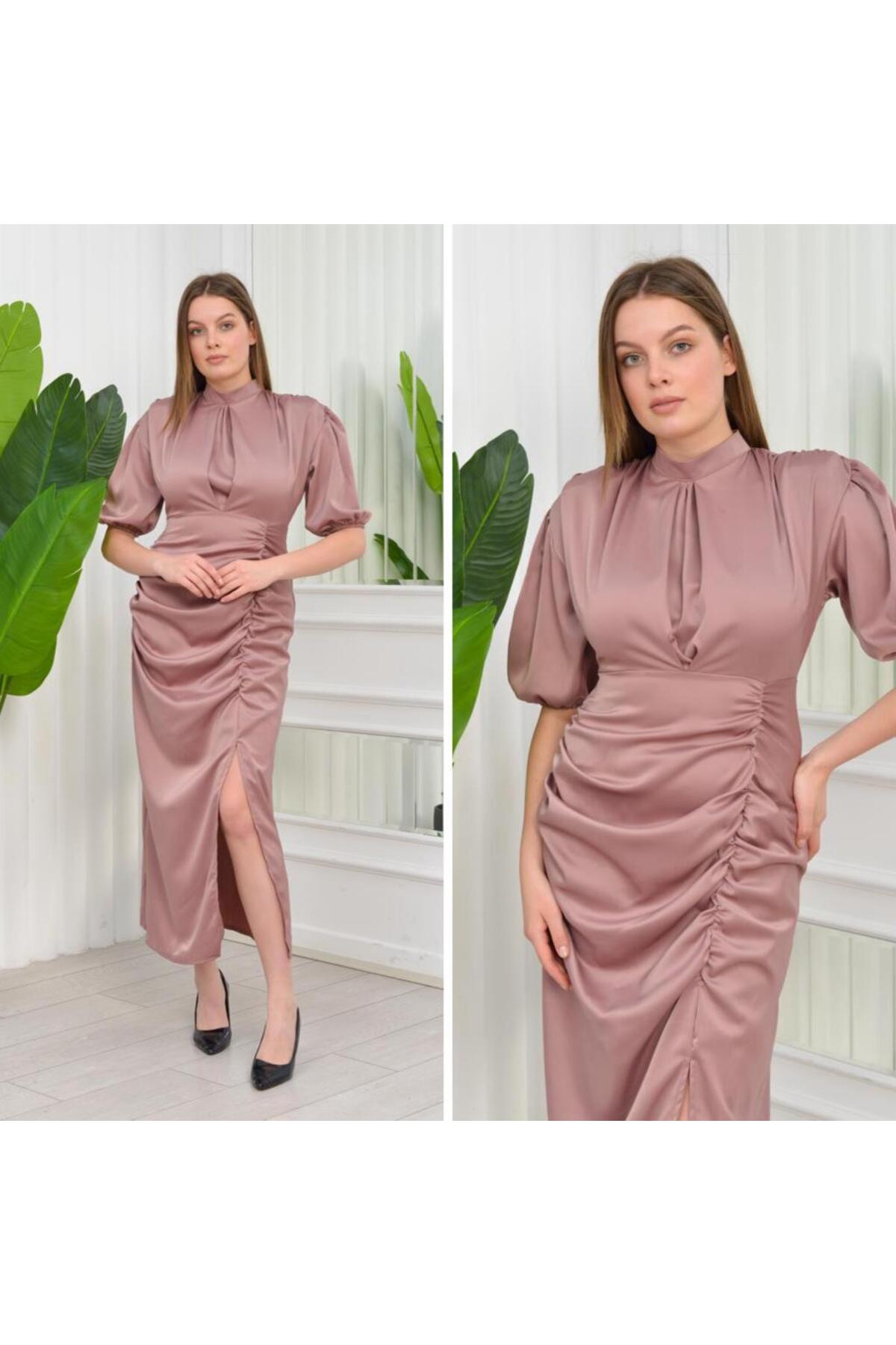 CİXAPLE Saten Balon Kol Drapeli Elbise
