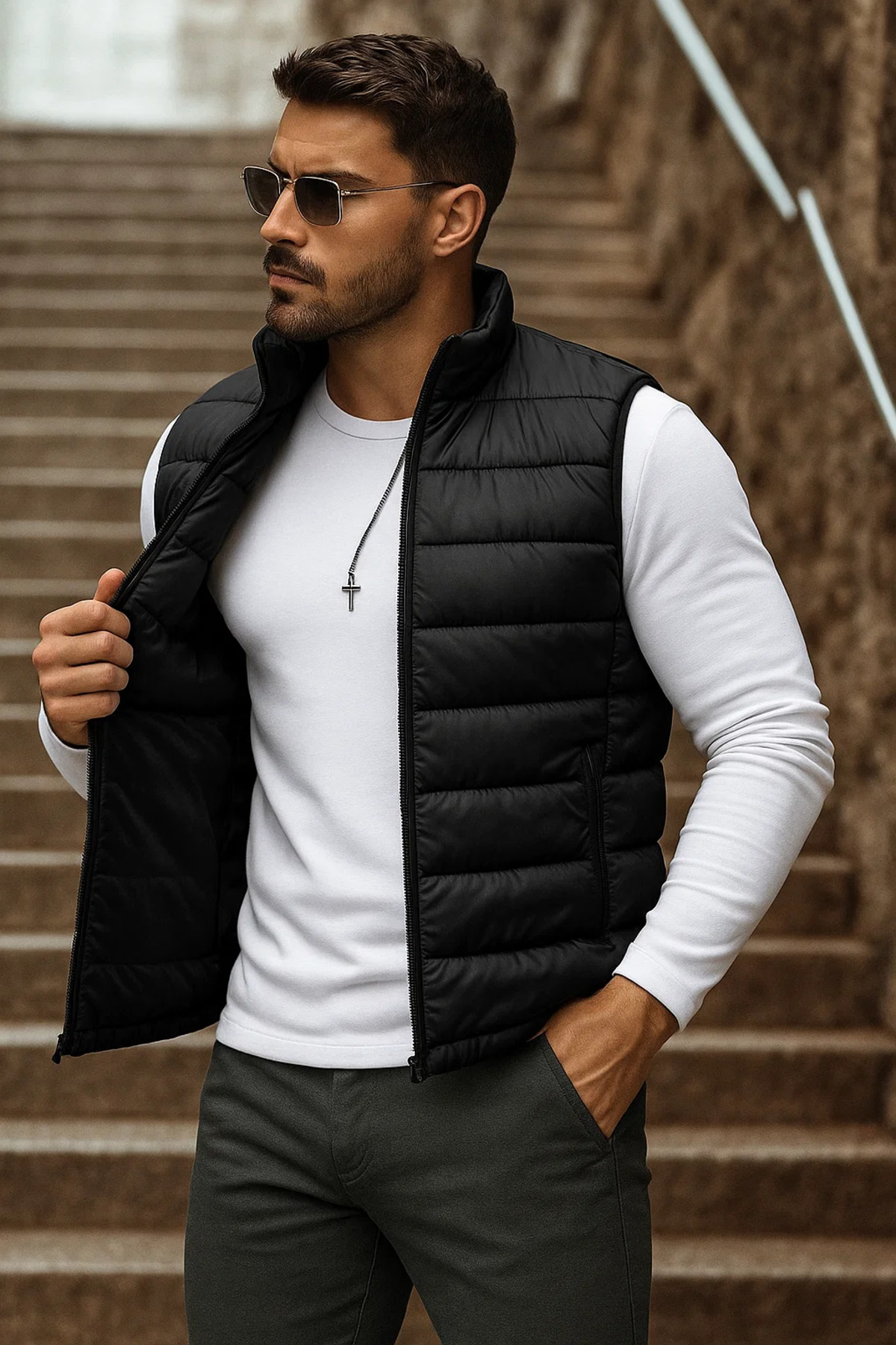 comstar Erkek Cepli Kışlık Fermuarlı Basic Siyah Şişme Yelek Özellikleri