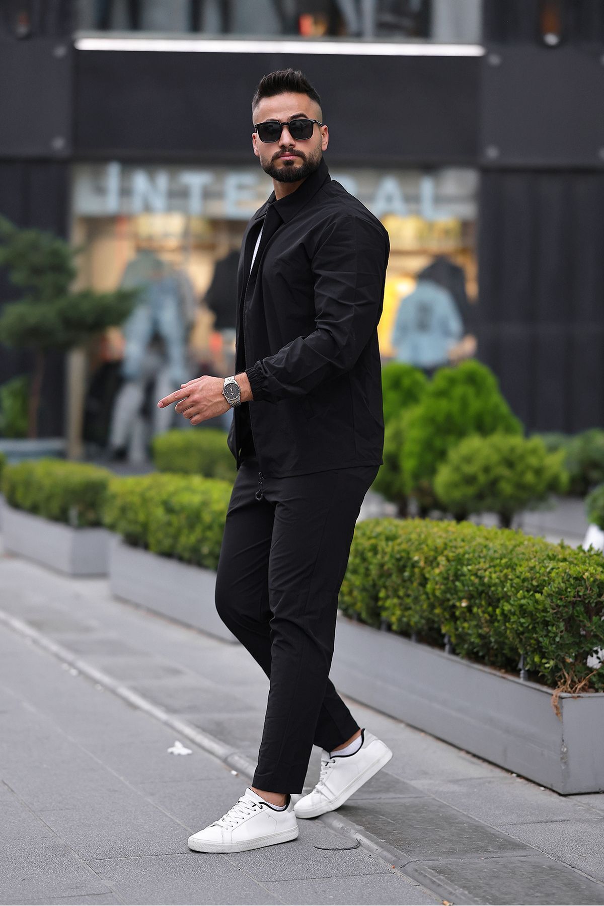 comstar Erkek Fermuar Gömlek Basic Eşofman Siyah İkili Takım