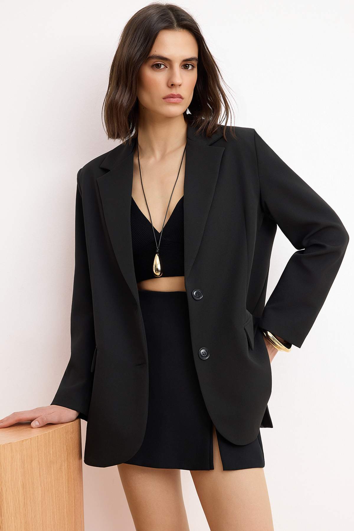 Vlastnosti Kolekce Trendyol Černá tkaná oversize bunda TWOAW24BC00107