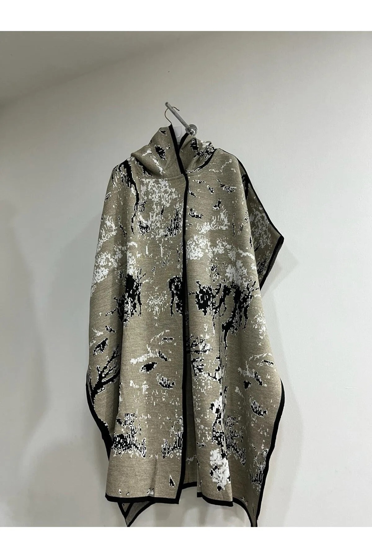 dignus kadın kapüşonlu desenli triko panço Özellikleri