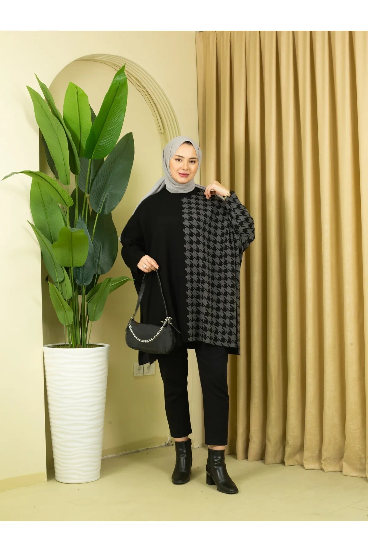 dignus triko kaz ayağı panço tunik