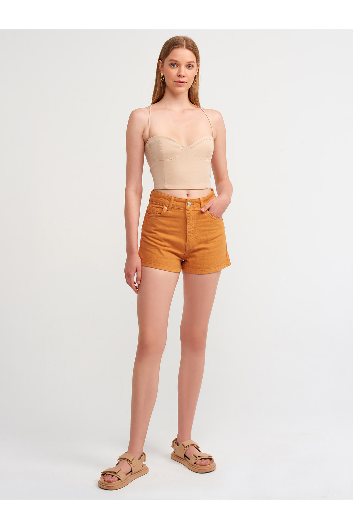 Dilvin 70281 Parça Boya Mom Şort-hardal Özellikleri