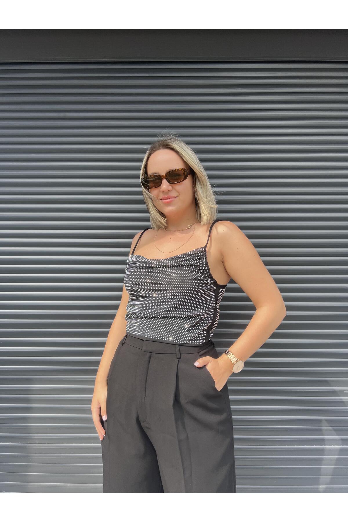 Dilvin Siyah Taş Baskılı Crop Top Özellikleri