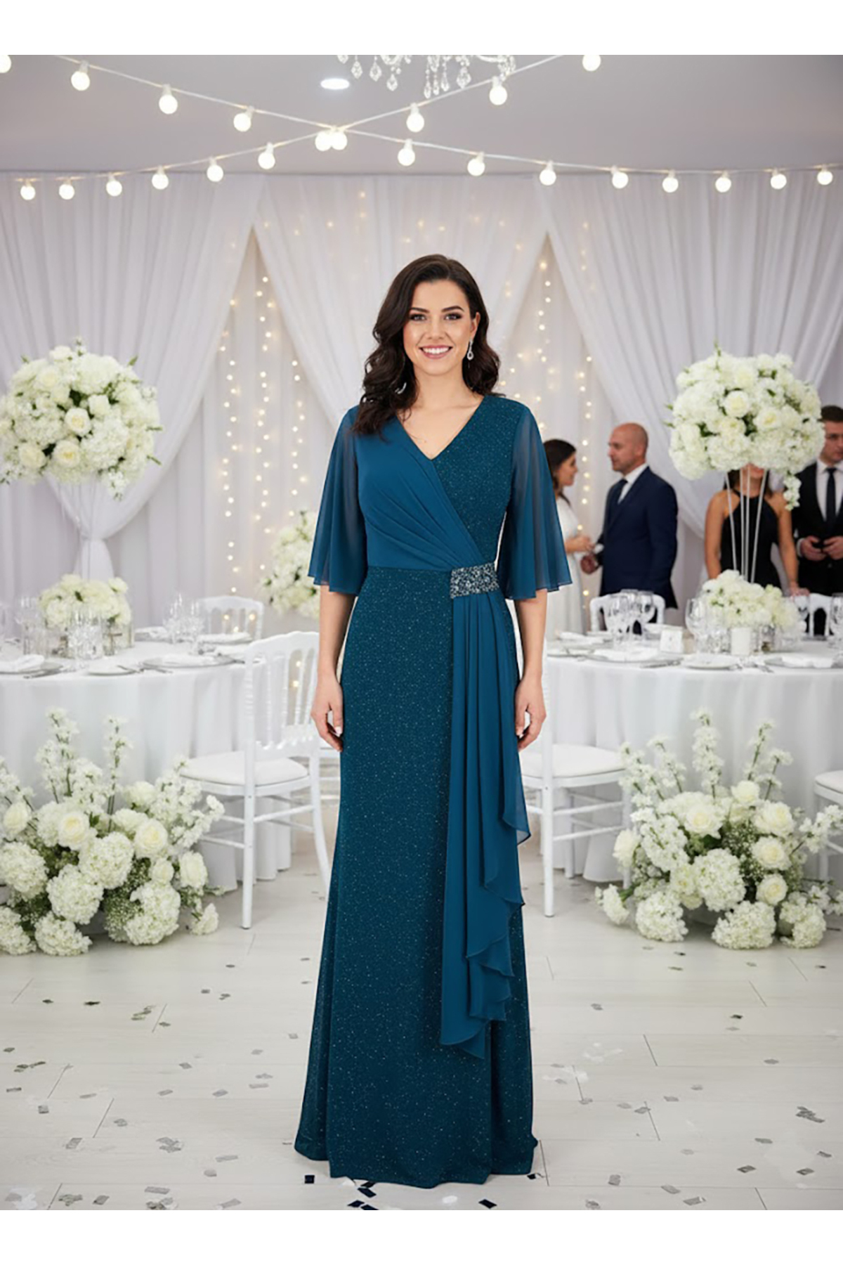 dml giyim Taş detay drapeli elbise Özellikleri