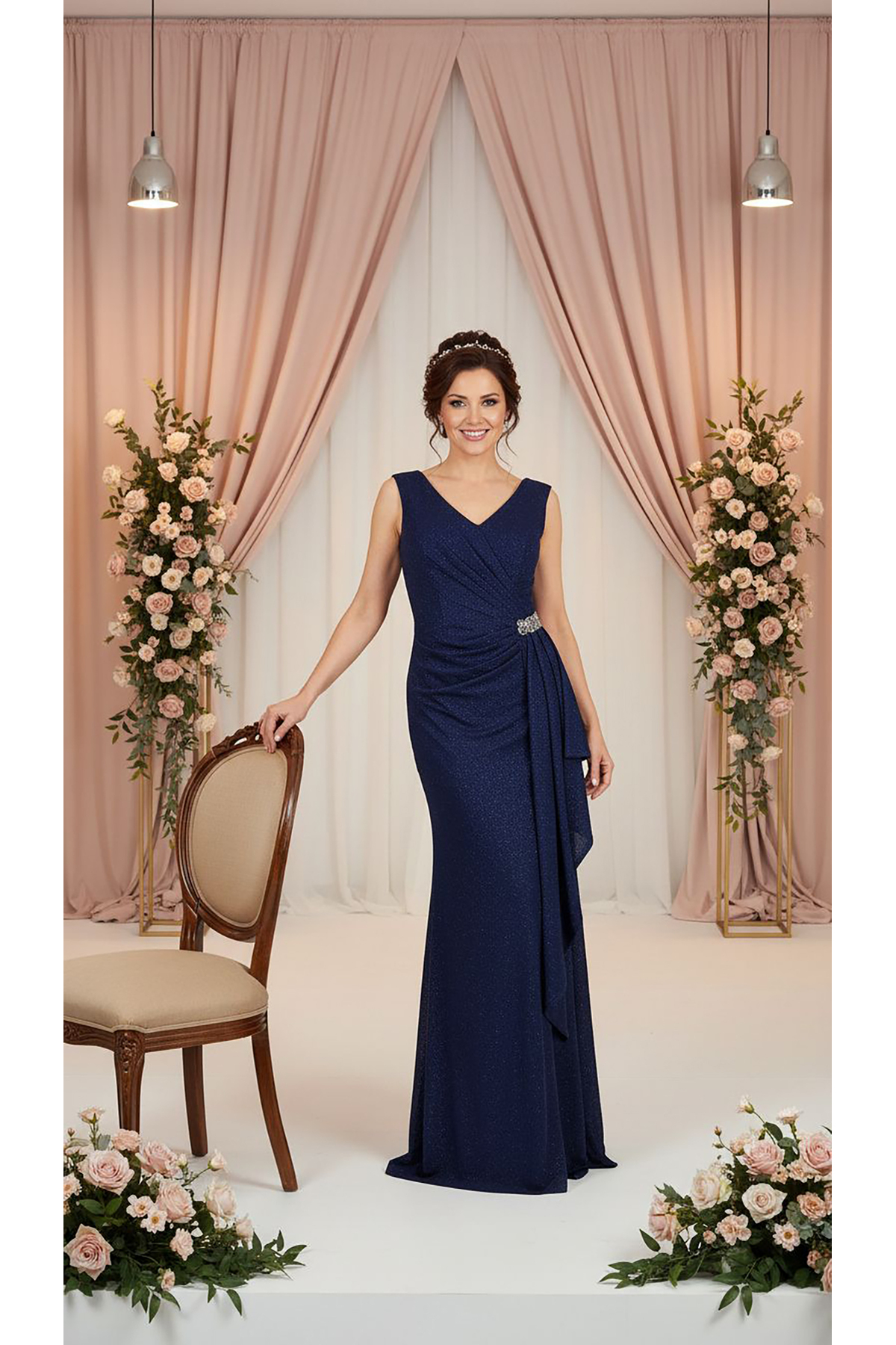 dml giyim Taş detaylı drapeli elbise Özellikleri